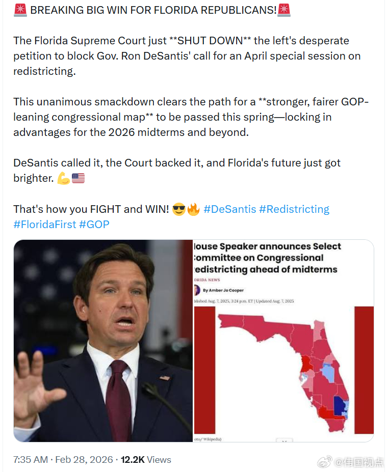 佛罗里达最高法院刚刚驳回了左派迫切提交的请愿书,阻止州长罗恩·德桑蒂斯召开的四月重划特别会议。