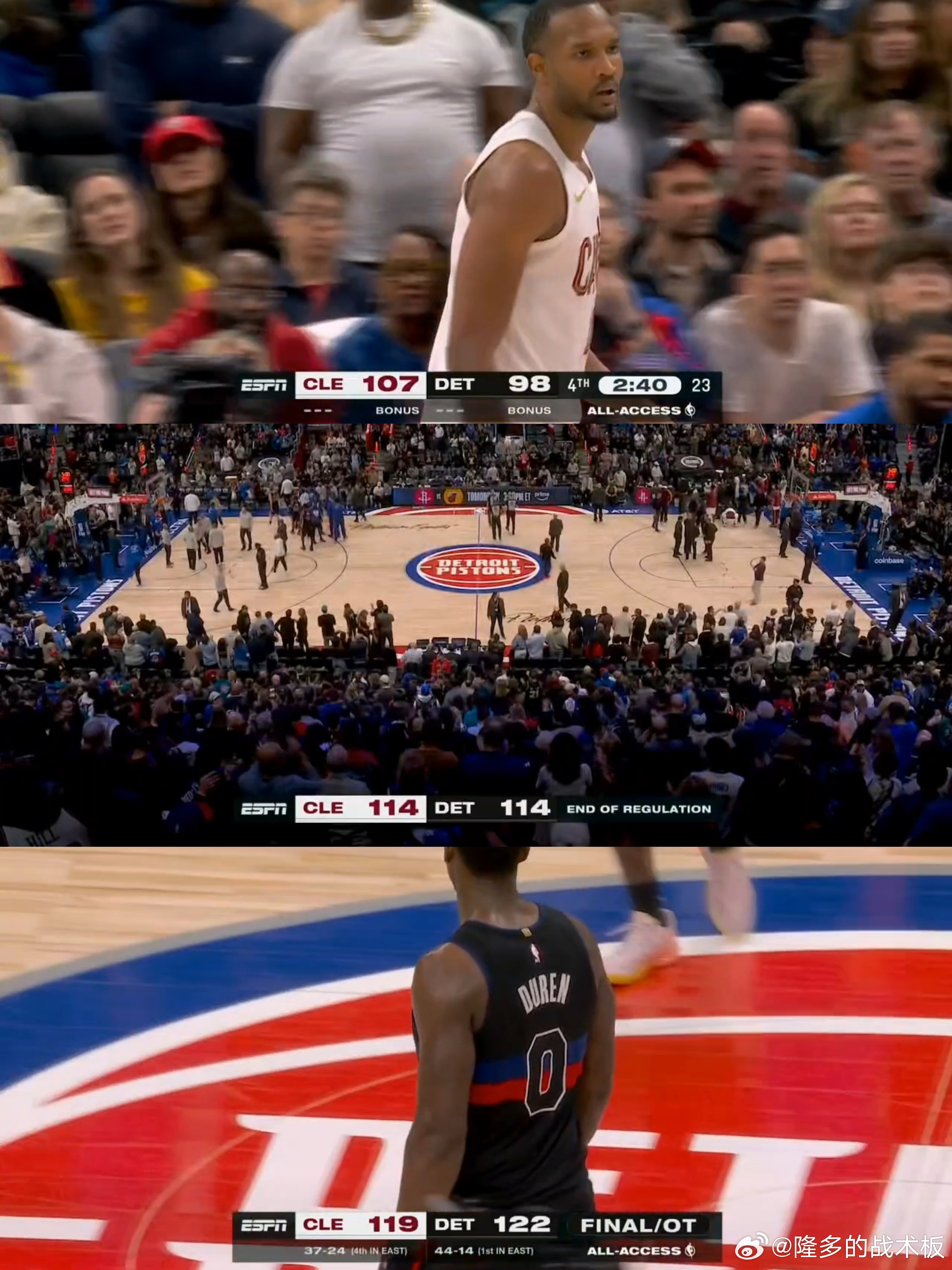 活塞加时逆转战胜骑士,最后2分多钟一度落后9分