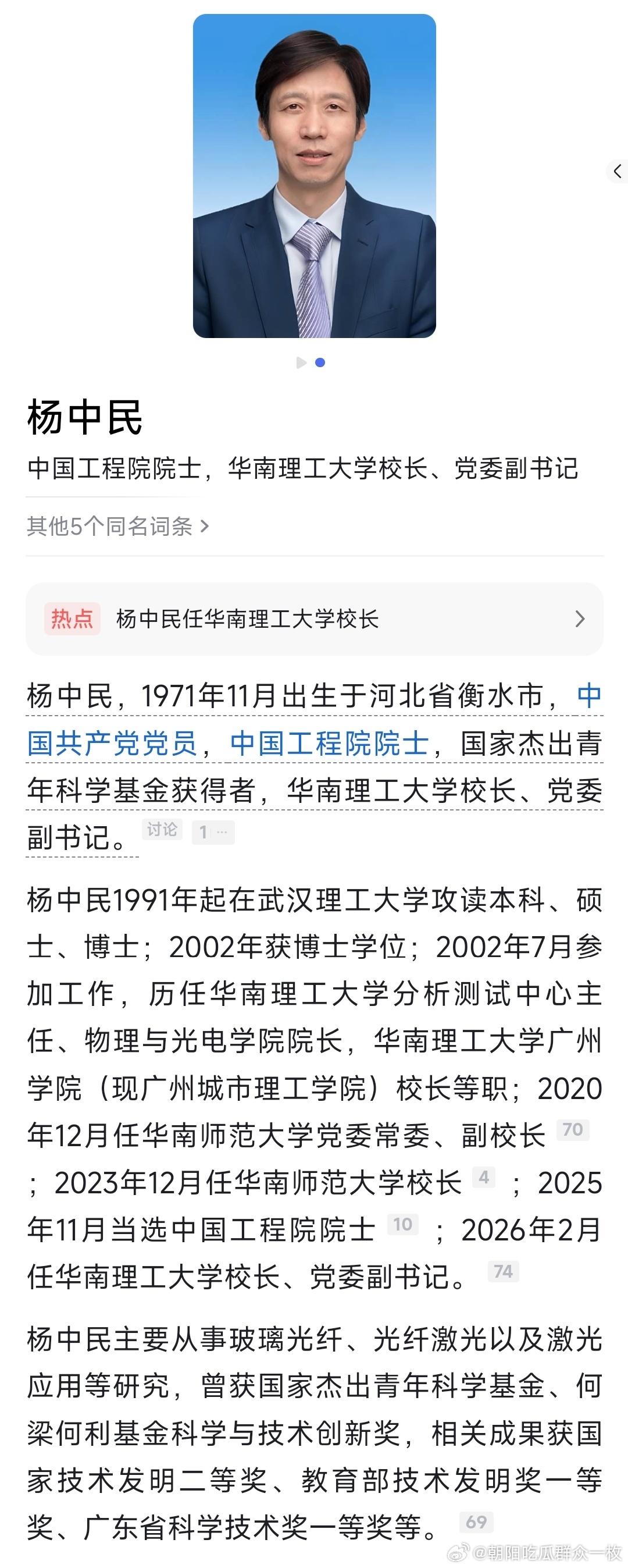 唐洪武任华南理工大学党委书记,杨中民任华南理工大学校长。