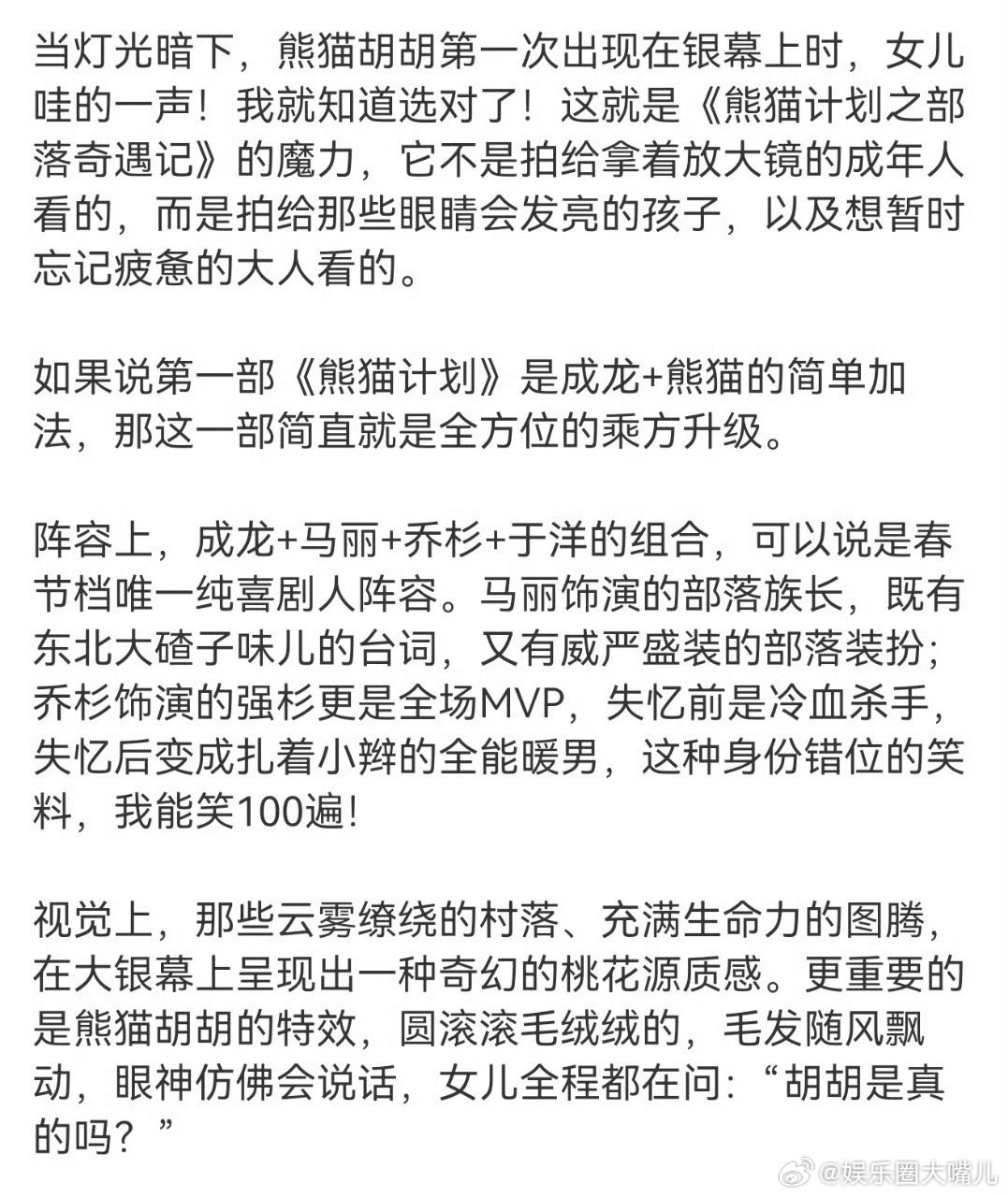 熊猫计划属于童心未泯的你我 一部电影,一场奇遇,一次童心的回归。从冷漠到温暖,从疲惫到治愈,《熊猫计划》用最温柔的方式告诉我们:永远不要丢掉内心的孩子。