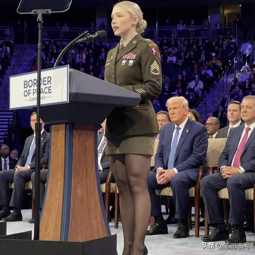 这张照片又火了,不得不说,美国女兵的穿着的确很是“讲究”! 这位据说是女军官,还去了做了演讲。这一身穿着的确是让人误以为是什么主播。 特朗普合影的时候更是笑不拢嘴了。话说,这样的装扮,哪个男人不喜欢呢? 身材,颜值都在线,有这样的女军官,估计美国男大兵们都会像打了鸡血一样勇猛吧?