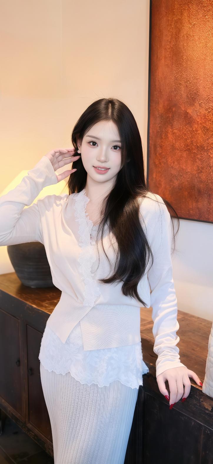 下面美女太美了!长发飘飘,雍容大方,一袭白衣显得皮肤白净。高贵冷艳,婀娜多姿,一