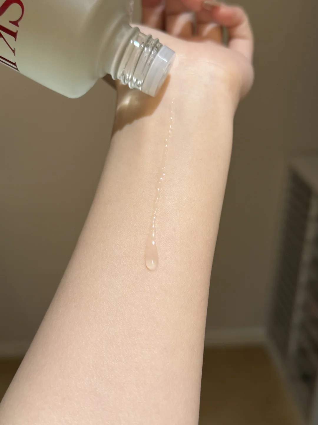 很清透的水状精华,秒吸收,大油皮用也一点不黏腻!!我每天就是早晚用它。三四滴就够了,轻轻按压进皮肤,感觉瞬间就被吃透了…[抓狂R]