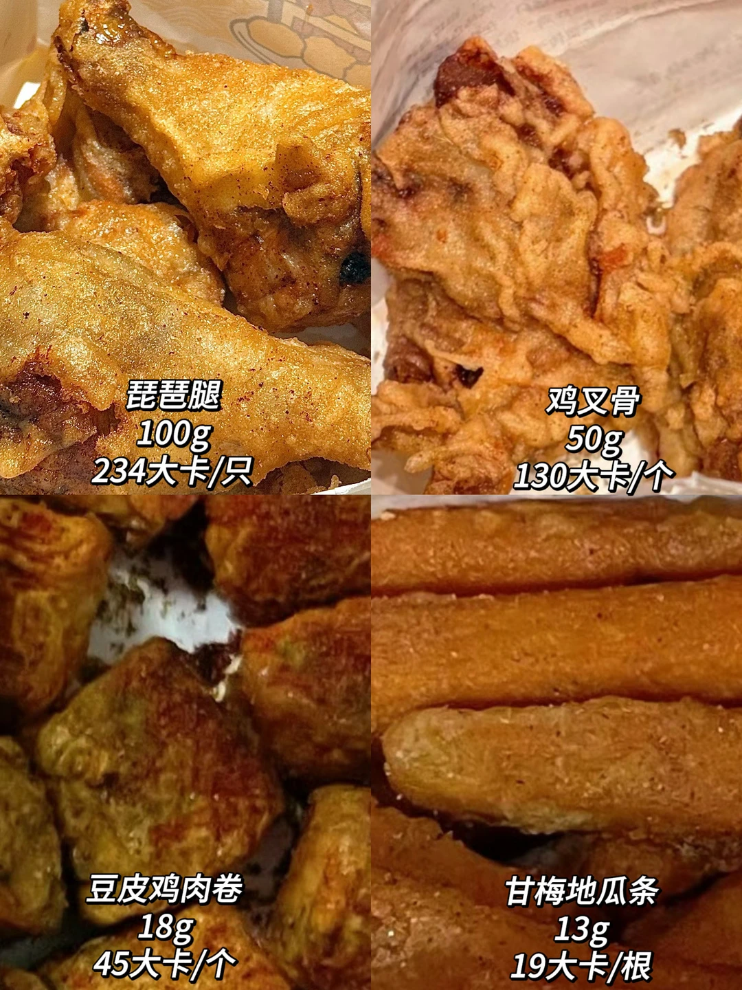 ✅整体呢热量没有像甜品类那么高!但是因为油炸过的脂肪含量不低!严格控卡的姐妹可以去皮适当解馋就可以啦!像琵琶腿去皮大概能少个50-60大卡,手枪腿去皮能少个100-130大卡左右哦~
