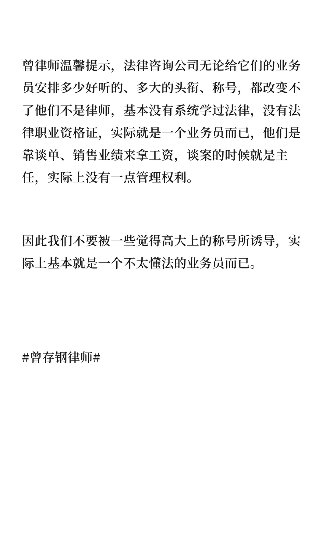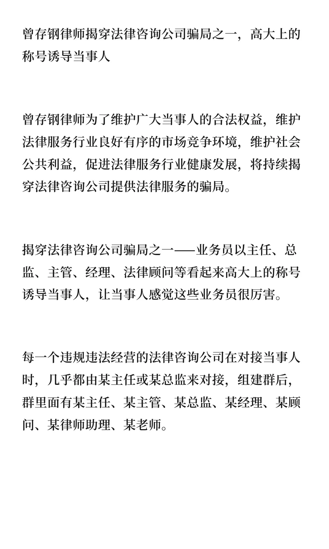曾存钢律师揭穿法律咨询公司骗局之一,高大