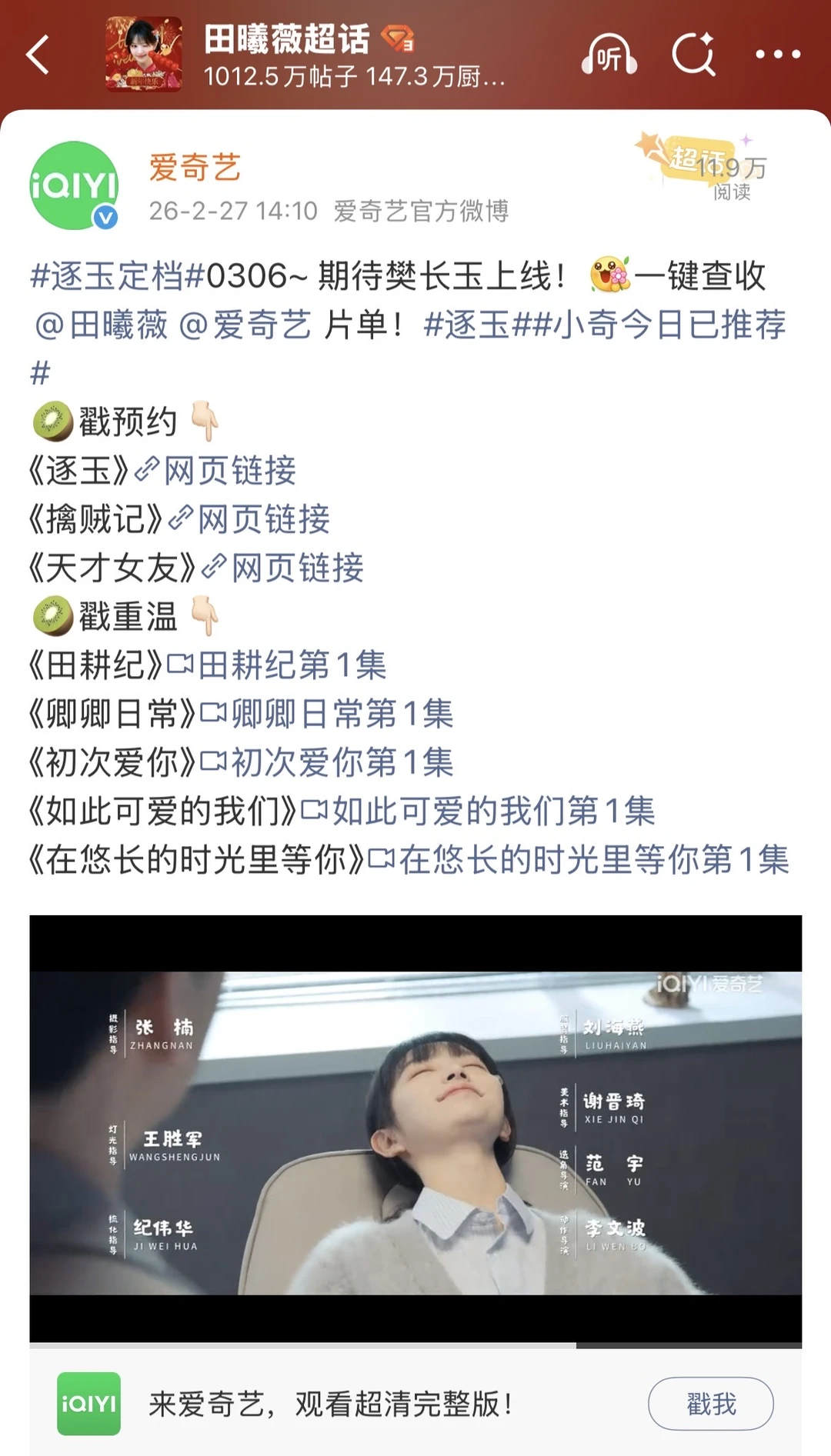 张凌赫、田曦薇《逐玉》官宣定档0306,🥝🐧两家联播
