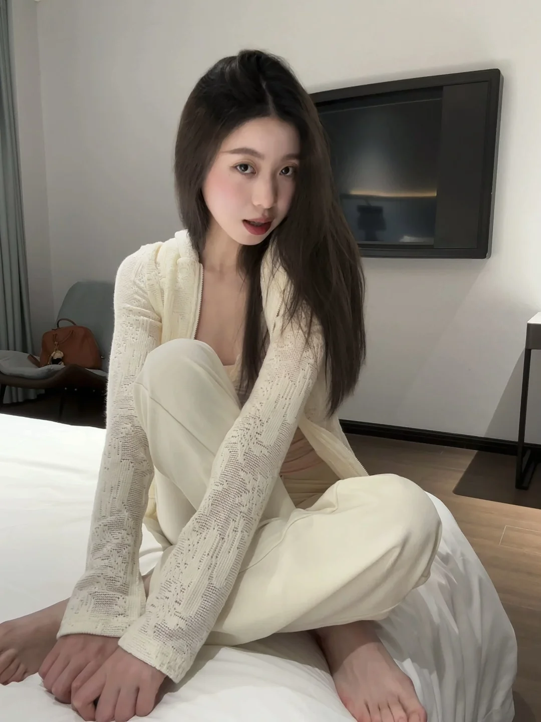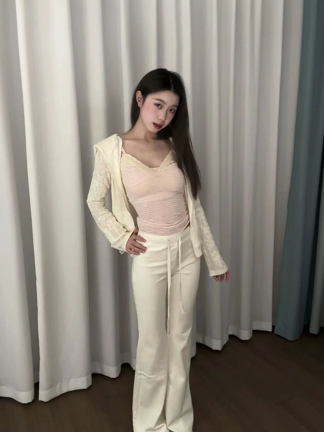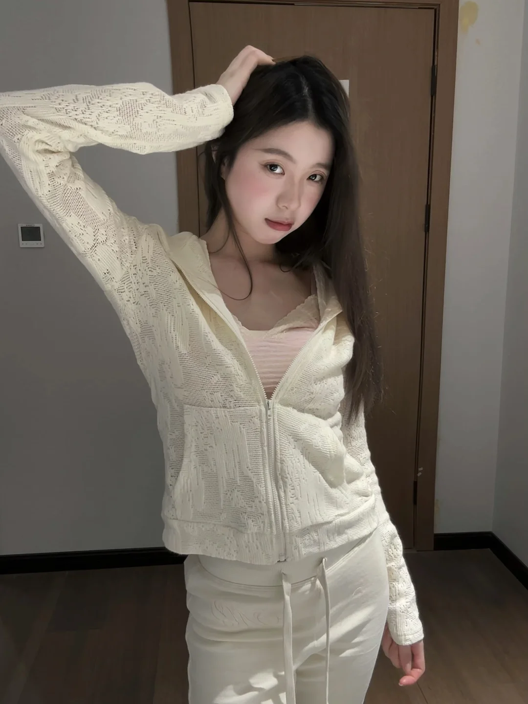 谁懂啊!这套真的又甜又软~ 奶白开衫+浅粉吊带,✨ 温柔到骨子里,💖 随便一拍都是甜妹感, 宅家也能美美的出片📸