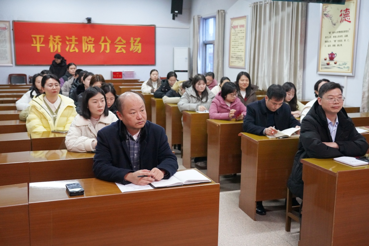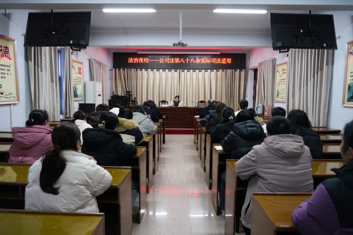 为进一步深化对新修订公司法司法解释的理解与适用,提升公司纠纷案件的审判质效,推动审判工作高质量发展,2月26日,信阳市平桥区人民法院组织开展“法治夜校”专题培训会。城东人民法庭庭长黄媚授课,民事审判员额法官、法官助理及书记员参加培训。