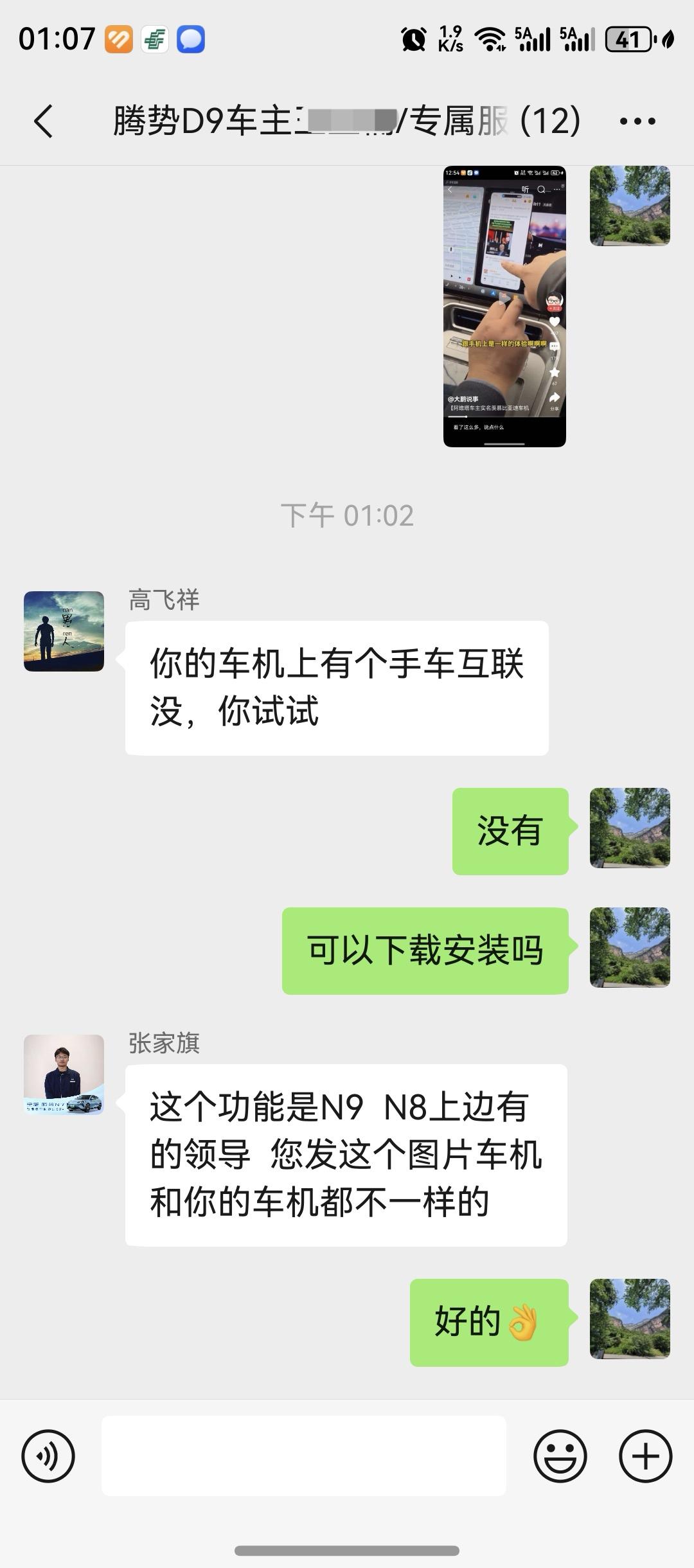 希望比亚迪、腾势能够尊重、重视老车主们,不要买车前疯狂许诺,买车后直接把老车主变成韭菜。 今天刷到一个新闻,说阿维塔车主羡慕比亚迪车机,华为手机可以直接手机屏幕共享到车机屏幕里,而且在车机屏幕中操作手机也非常丝滑。 其实2025年中比亚迪就宣传OTA升级手车互联功能,现在已经到了2026年,腾势D9至今也没醒来升级。 问了问腾势中心的服务群,工作人员表示车机里面没有手车互联功能,那就不能使用。 还是希望比亚迪能够加强对老车主的服务吧,把售后服务的硬实力我觉得非常不错,希望把看不到的软实力再提升一个档次。