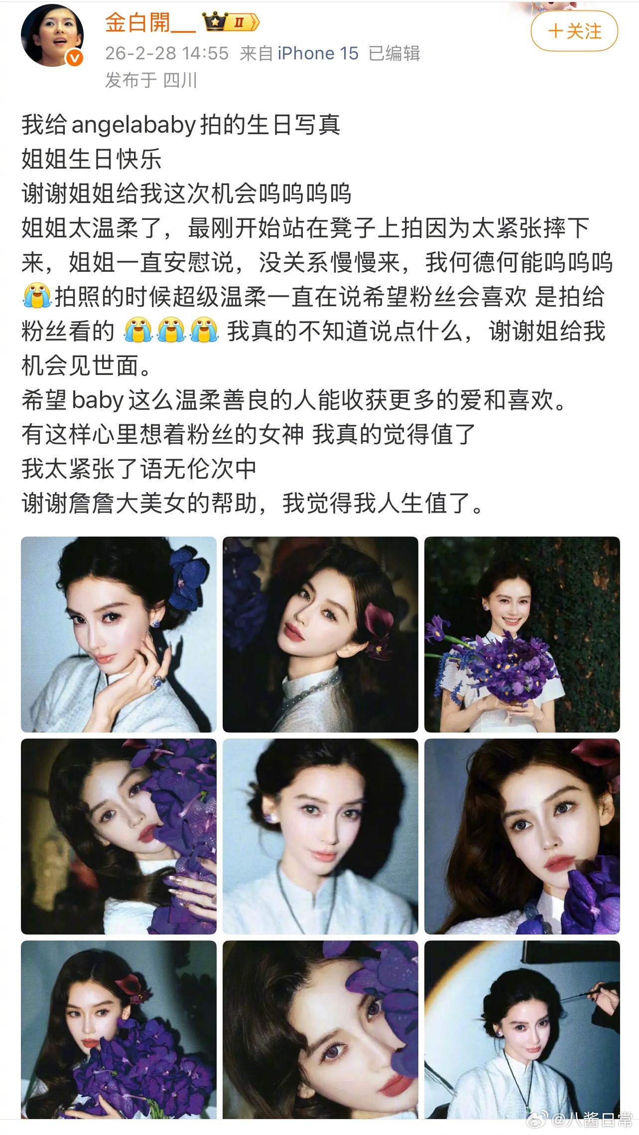 金白开给Angelababy拍的生日写真Angelababy37岁了