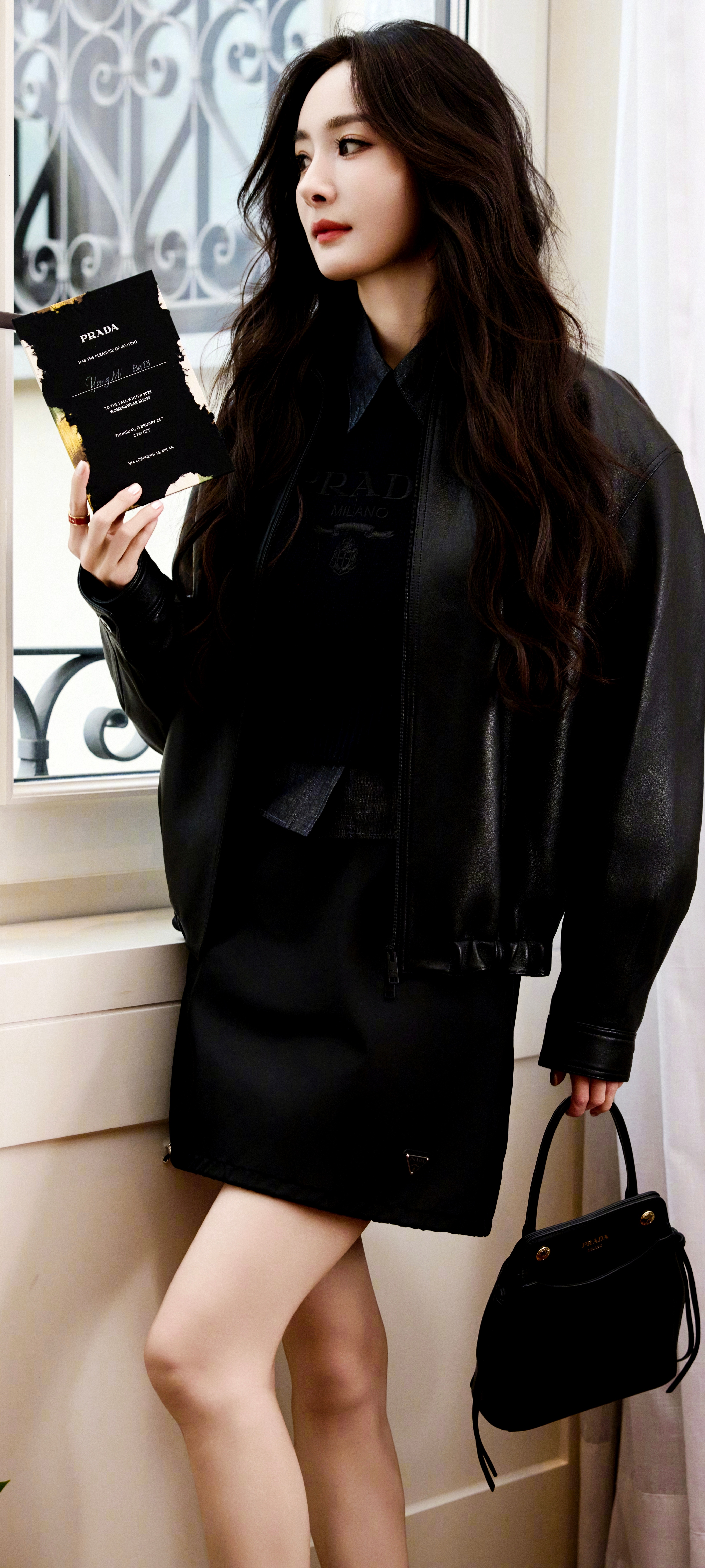 出席Prada2026秋冬系列发布秀的超模陈瑜Prada,身穿春夏系列衬衫短