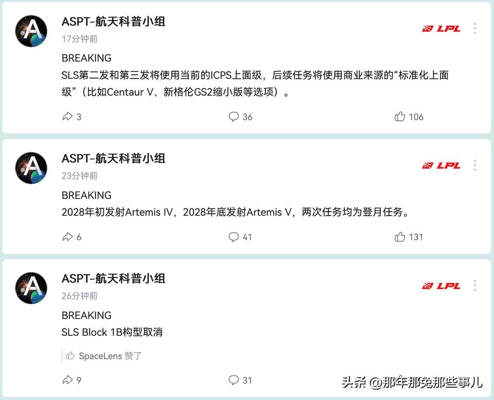 NASA登月计划大改!阿耳忒弥斯3号取消登月 !2028年登月目标押注阿4阿5 2026年2月27日NASA官宣重磅调整阿耳忒弥斯登月计划,原定首次载人登月的阿耳忒弥斯3号直接取消登月任务,2027年转做近地轨道对接测试,对接SpaceX、蓝色起源的一款或两款着陆器,完成生命支持、推进系统等核心验证。真正的登月任务顺延至阿耳忒弥斯4号、5号,分别定档2028年初、年底发射,这也是NASA为抢抓任期节点做出的关键调整。 此次调整同步敲定SLS火箭重大改动,Block 1B构型直接取消,二、三发继续用现有ICPS上面级,后续全面替换为Centaur V等商业标准化上面级,核心目标是把发射间隔从3.5年压缩至10个月。 目前阿耳忒弥斯2号还在故障排查,3月发射窗口已泡汤,而商业着陆器研发进度滞后,硬件落地仍存巨大不确定性,2028年登月目标能否落地,还是个大大的问号。