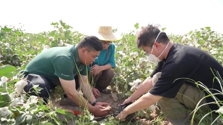 一片400亩的试验示范田里,棉株整齐健壮。种植户李开江说:“我家的地用了生物降解膜和生物菌剂,整体表现非常好,预计能增产10%到20%。降解膜到后期无需回收,节省了人力和机械成本。”