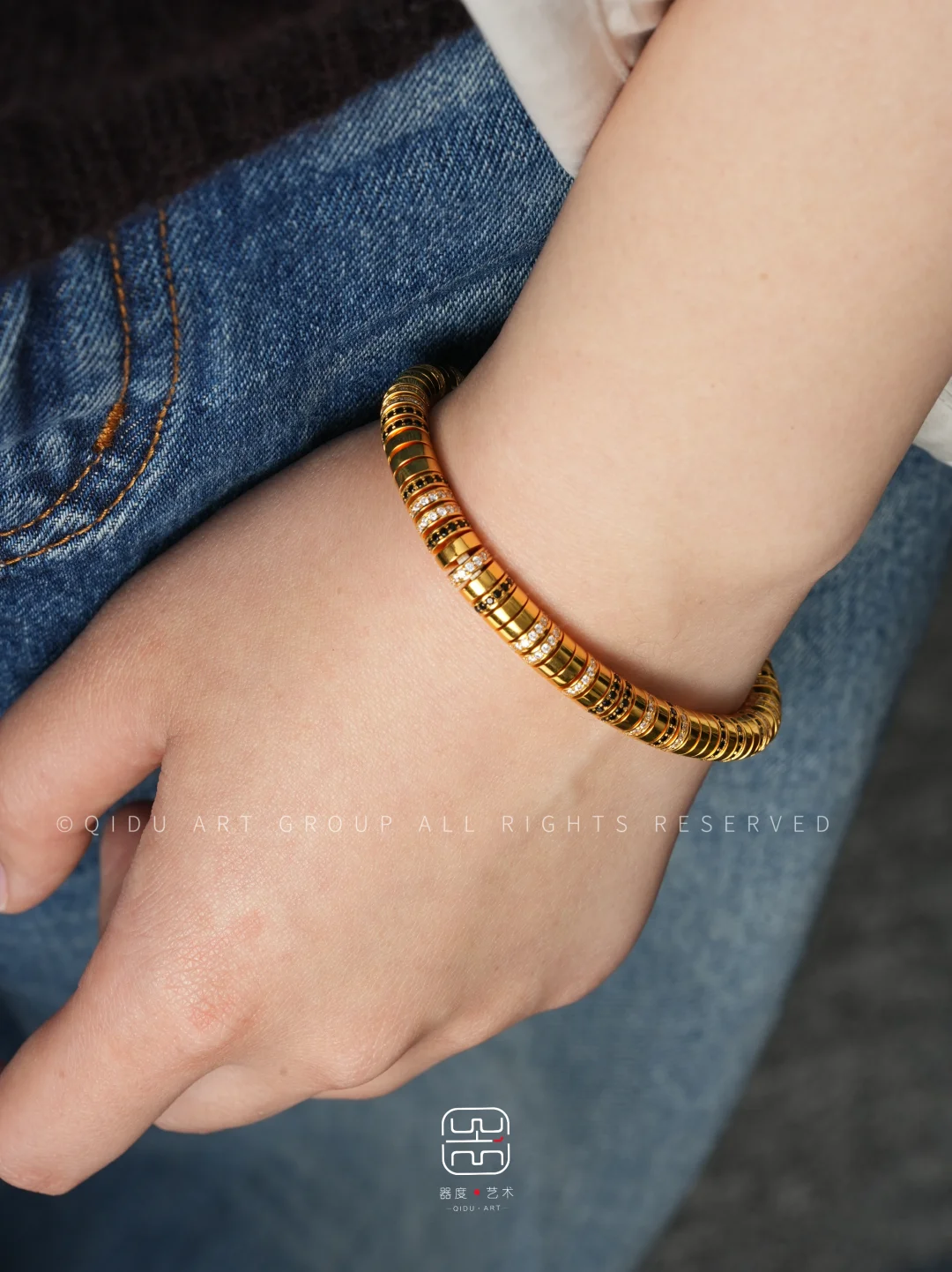 材质 ⧫ 𝟭𝟴𝗸黄金 器型 ⧫ 精工药片直切手串 尺寸 ⧫ 𝟲.𝟬𝗺𝗺 圈口 ⧫ 可定制 (模特手围14.5cm,上手为圈口17cm) 文玩人的精致注脚,社交名利场的审美名片