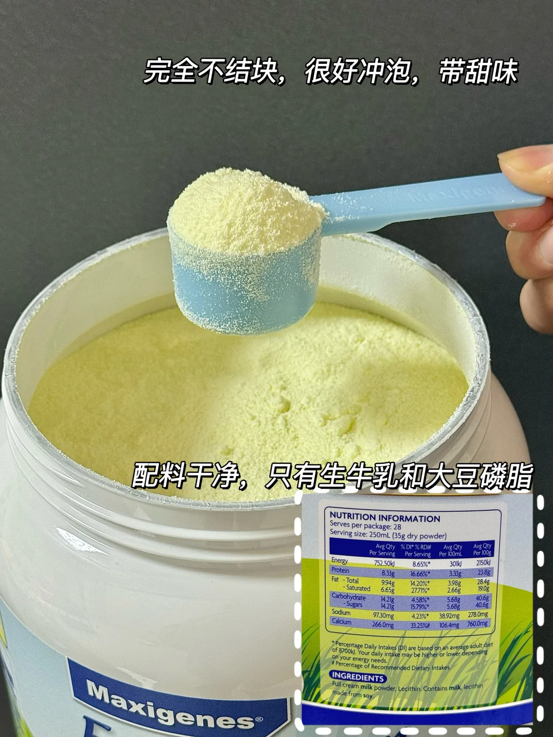 粉质细腻易冲泡,不结块