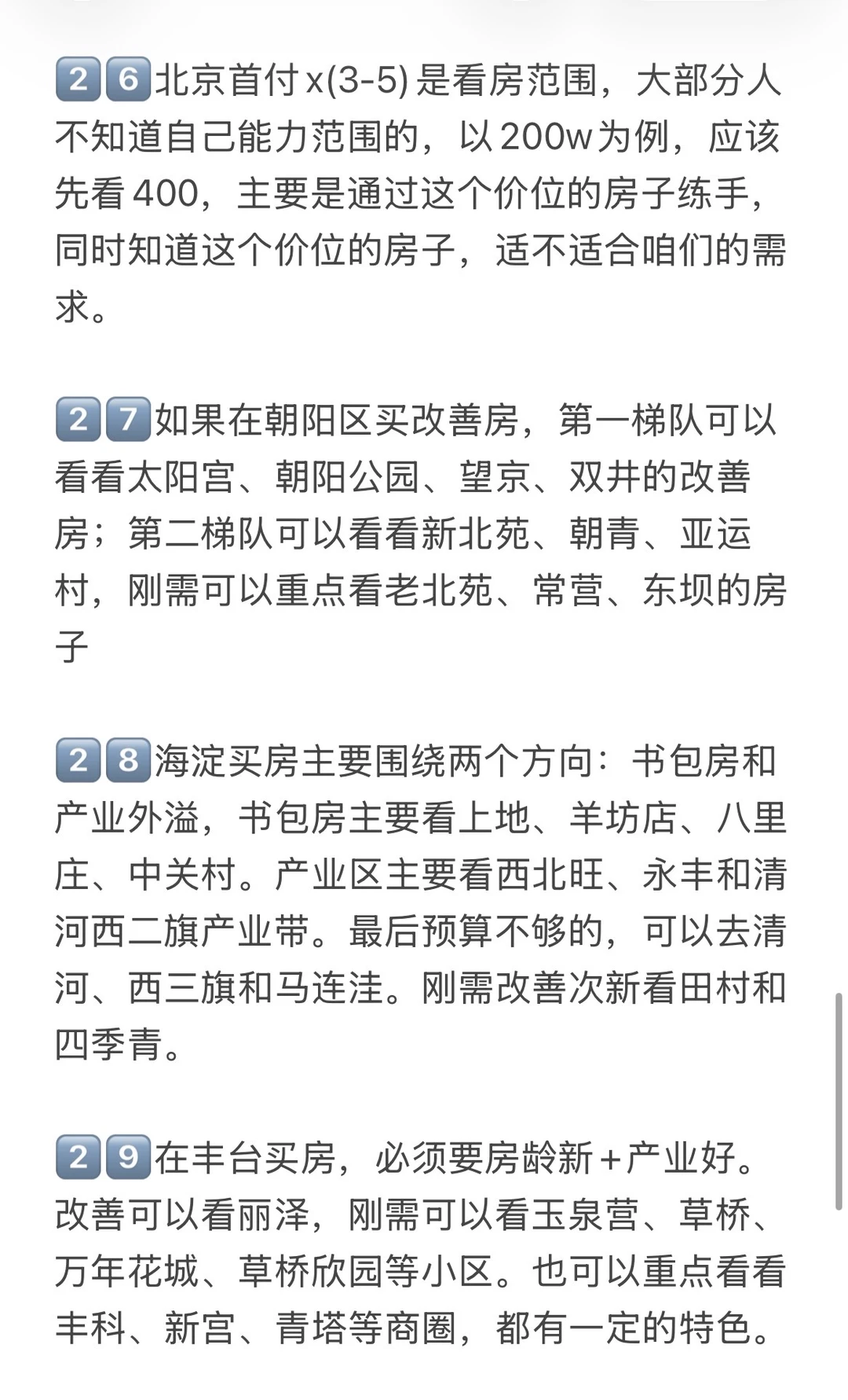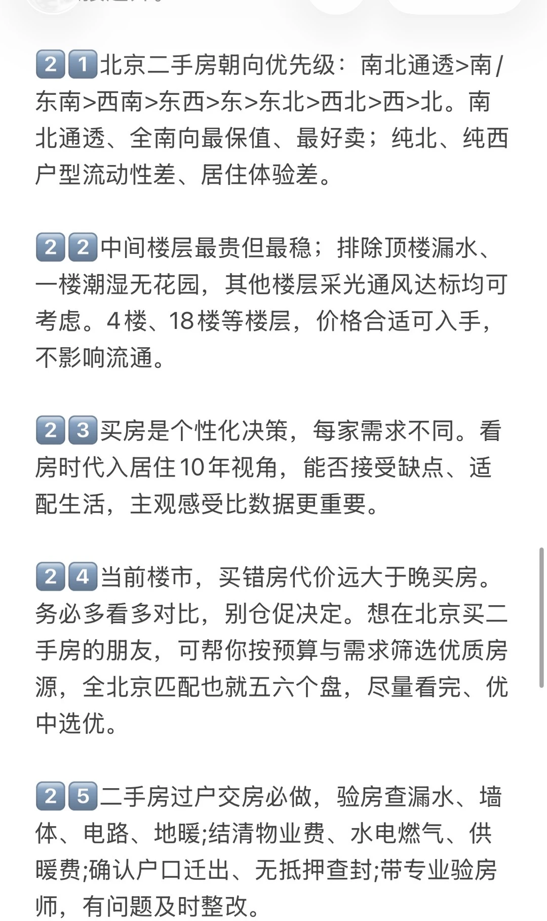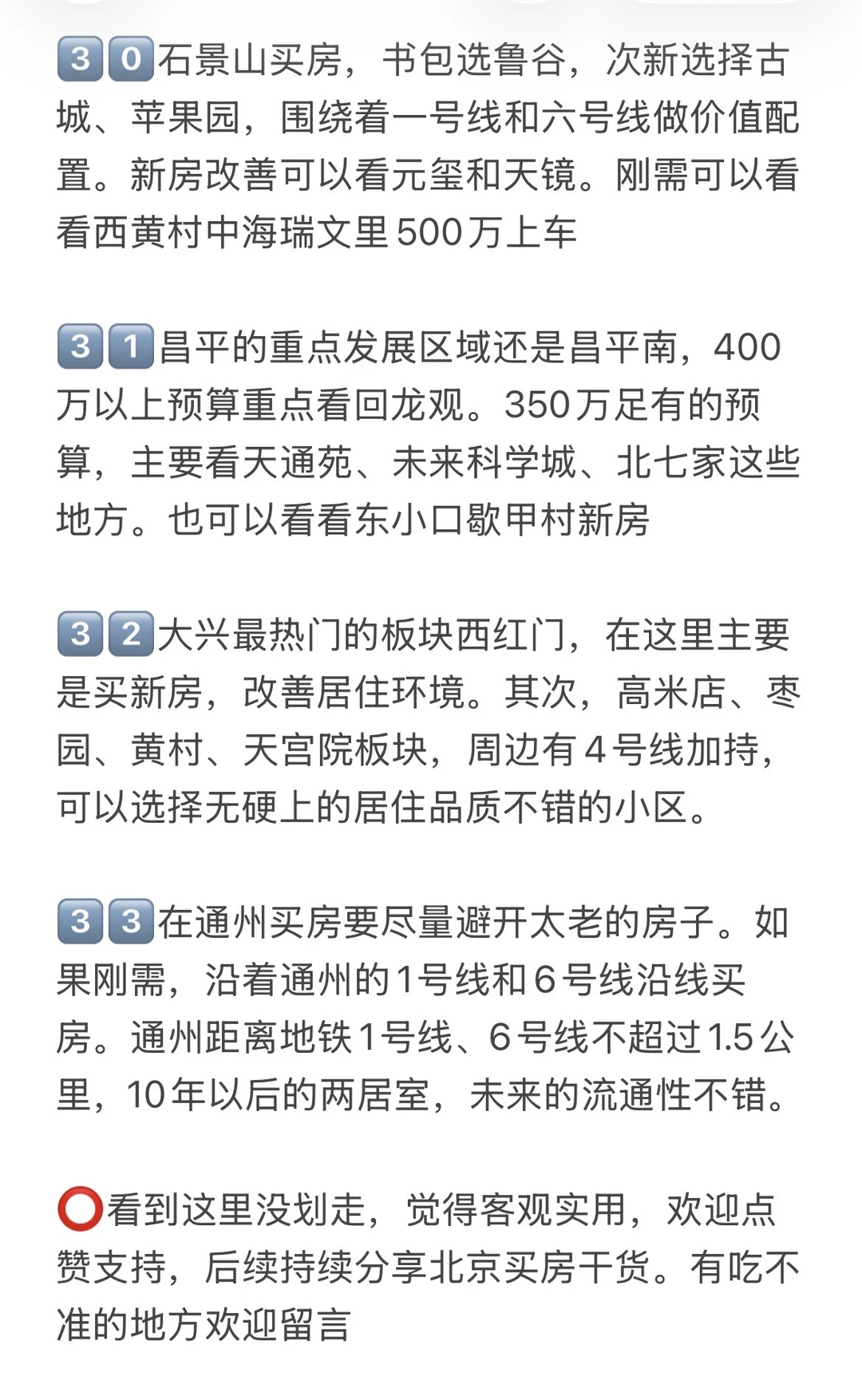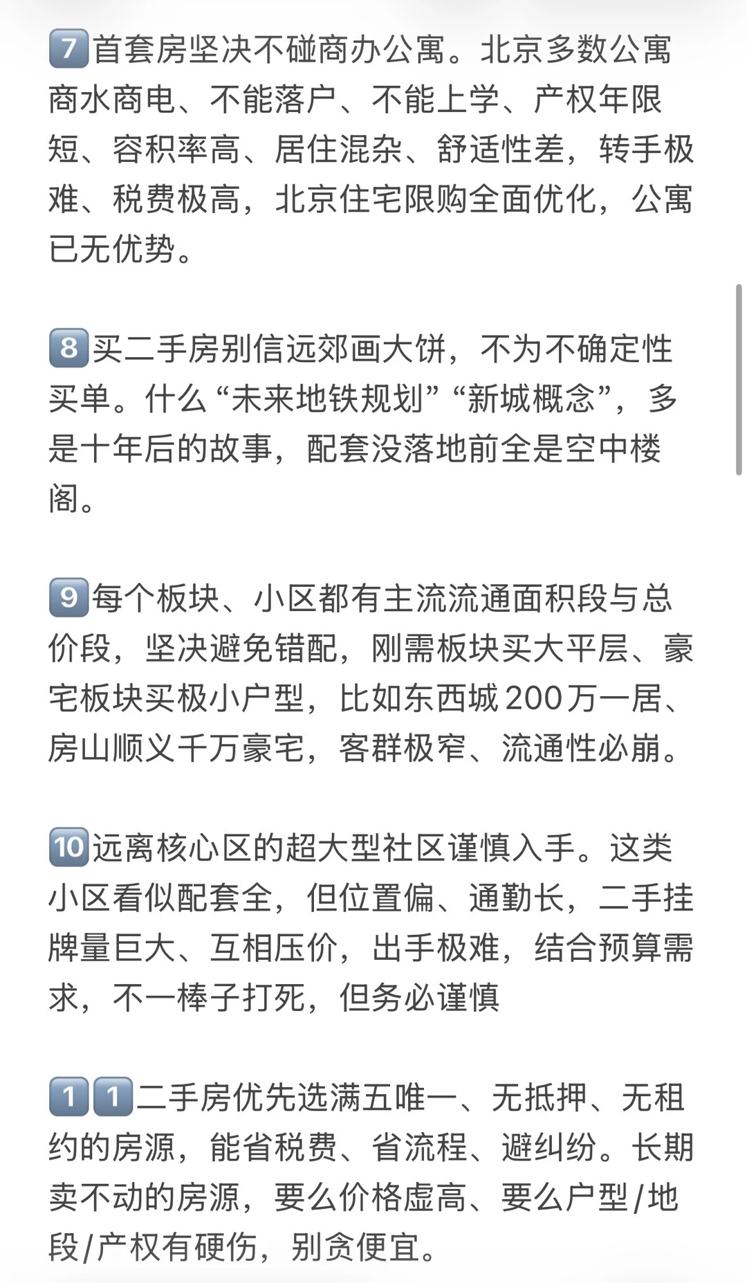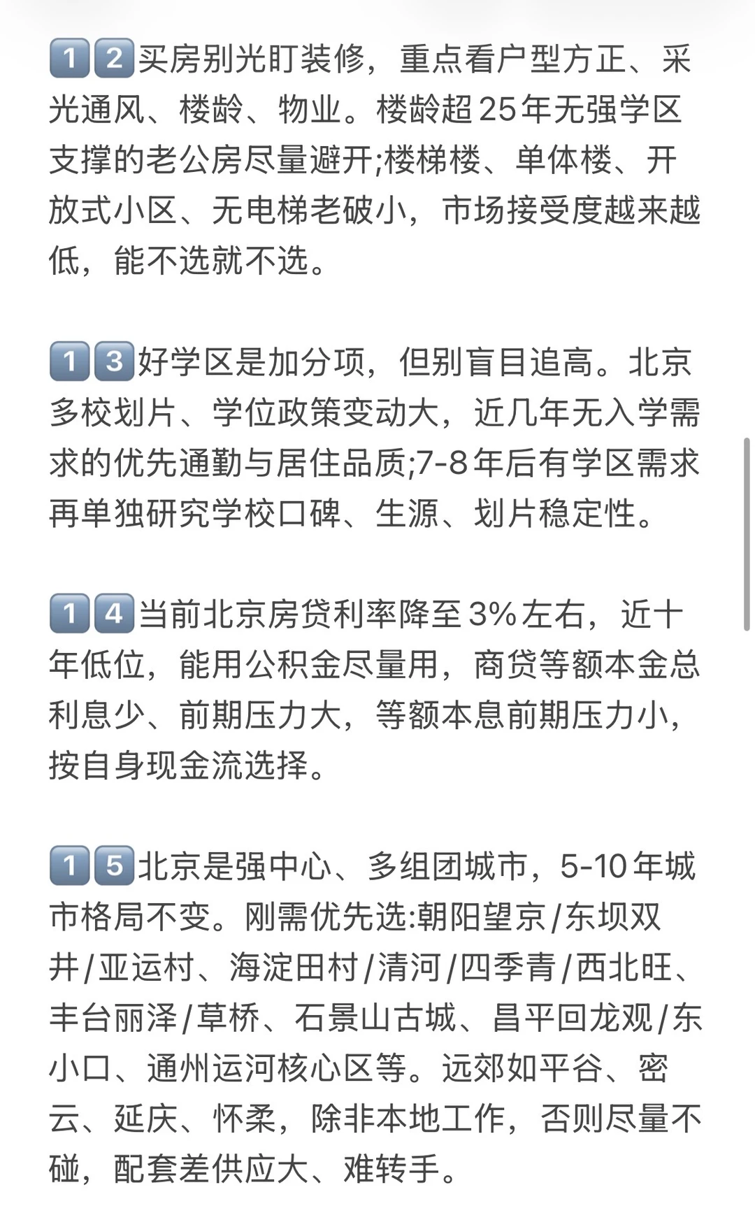 1️⃣房地产已经进入下半场,今后北京二手房很难再有大涨普涨,远郊、无地铁、无配套的房源现在跌、将来更难涨,必须认清并接受这个现实。