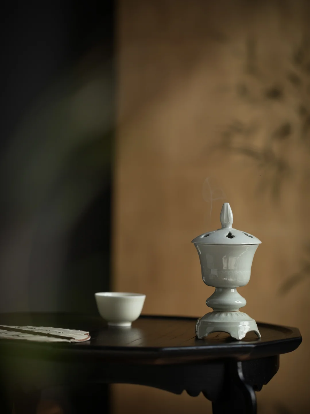 复刻宋徽宗抚琴图的旧物,青白瓷温润如玉。三节相叠的炉身,在茶席一角静静立着。点一炉香,看烟气与茶烟一同升腾,仿佛千年前的雅集,也在这杯茶里复活。