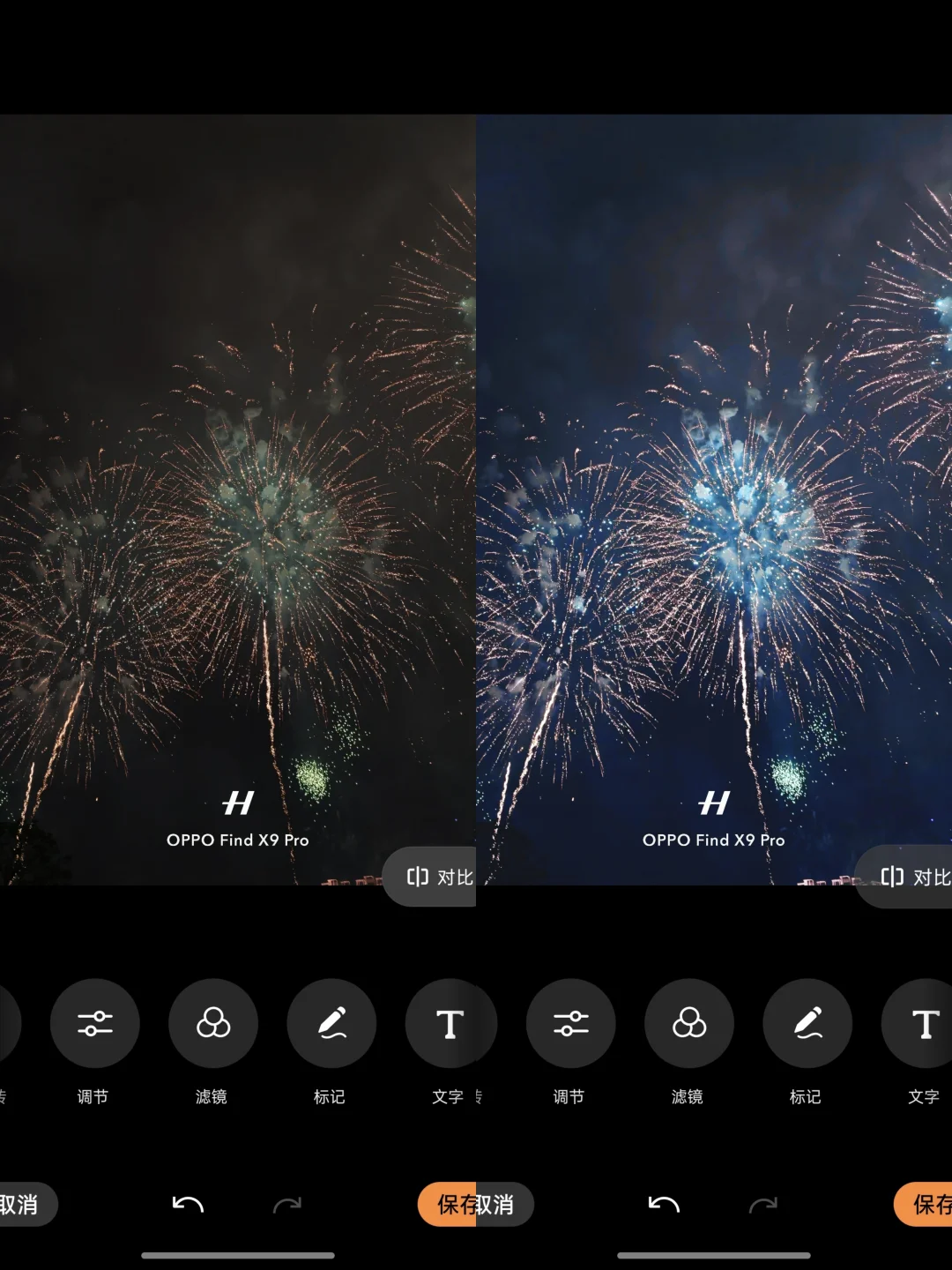 ✨今天分享一下烟花电影氛围感滤镜,发现一个好适合烟花的滤镜!饱和度和电影感刚刚好! . ✨打开OPPO Find X9的大师模式 上方的EV调成-1.3 因为火的光线比较难把控 所以原图我们多点保留高光的细节 让画面暗一点更有电影感! . 💻后期教程 手机相册自带的滤镜 滤镜:浓郁 曝光+20 鲜明度+25 高光+34 阴影-16 对比度+26 饱和度+9 亮度+2 色温-80 色调+24 .