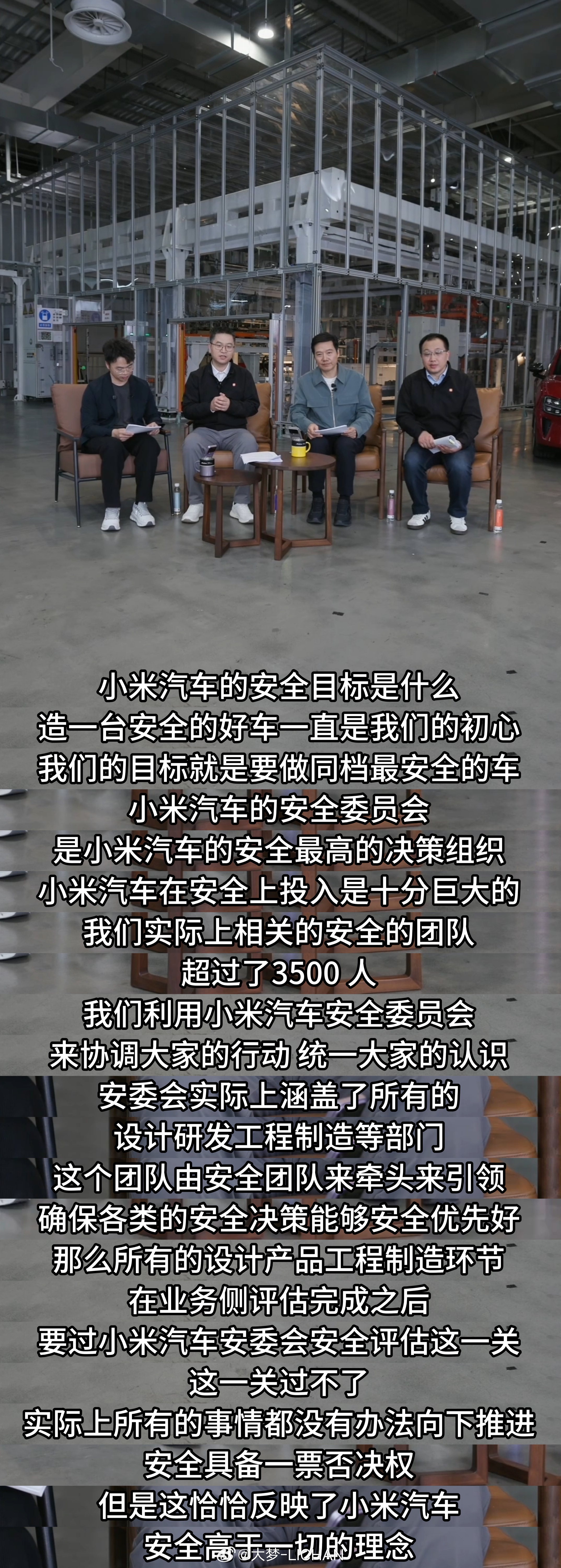 现在有些企业怕暴露问题,遮遮掩掩。出事故了第一反应就是盖白布但小米愿意把测试视频放出来,把碰撞数据晒出来,甚至主动拆解车身讲原理。