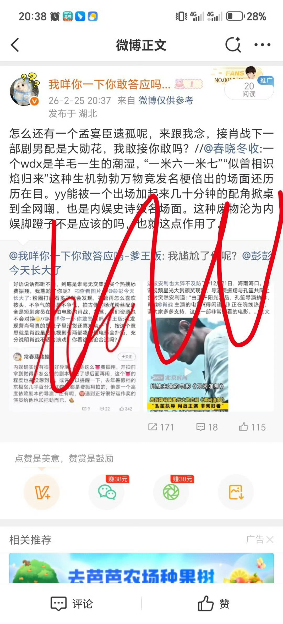 (我是真的真的真的不想发了,但是这太好笑了,不发出来我会遗憾终生的) 怎么办啊好像真给我接到了,🦐还看什么营肖号,不如跪下来求求我吧,都是在装比,起码我是真能装到点子上啊