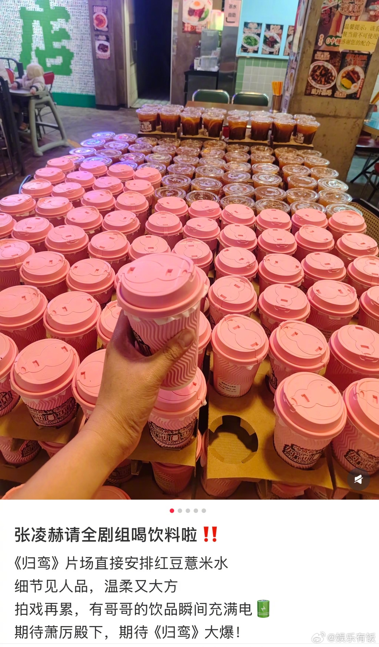 张凌赫请剧组员工喝奶茶张凌赫爱请客的漂亮哥哥 网友分享张凌赫请剧组员工喝红豆薏米水,这不是一般的红豆,这是张凌赫送的红豆张凌赫