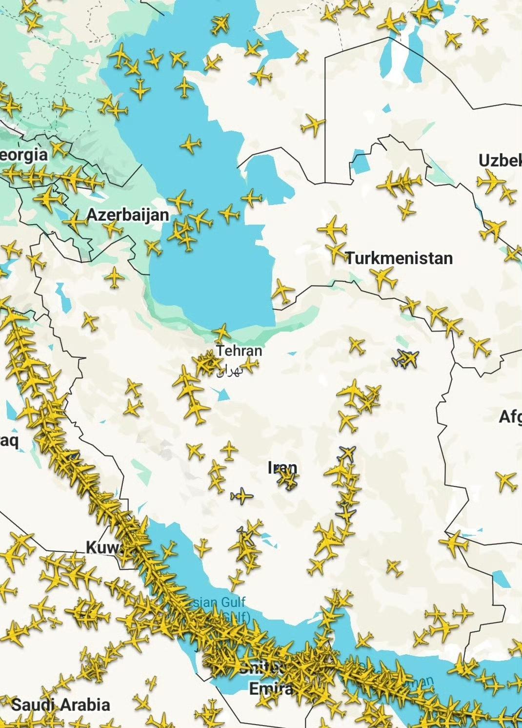 伊拉克巴格达机场即将关闭,空域预计在数分钟后开始清空! 根据专业航空网站数据,伊拉克正在清空国内空域的所有民航客机,以色列已经关闭了领空不少航班开始返航。 从专业的航图上可以看到,大量的国际航班正在避开敏感的空域,各位是怎么看的?欢迎评论区留言。