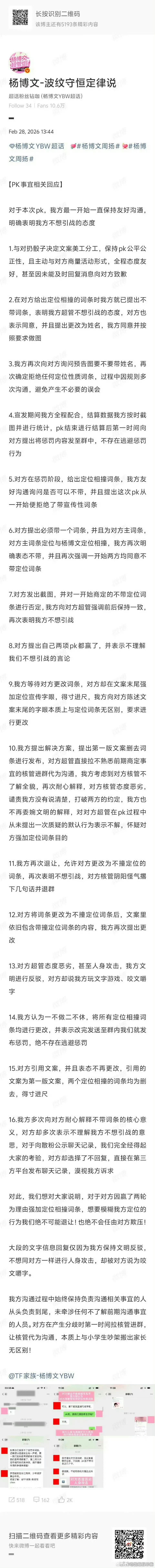 陈浚铭家和杨博文家就PK相关 发表了情况说明