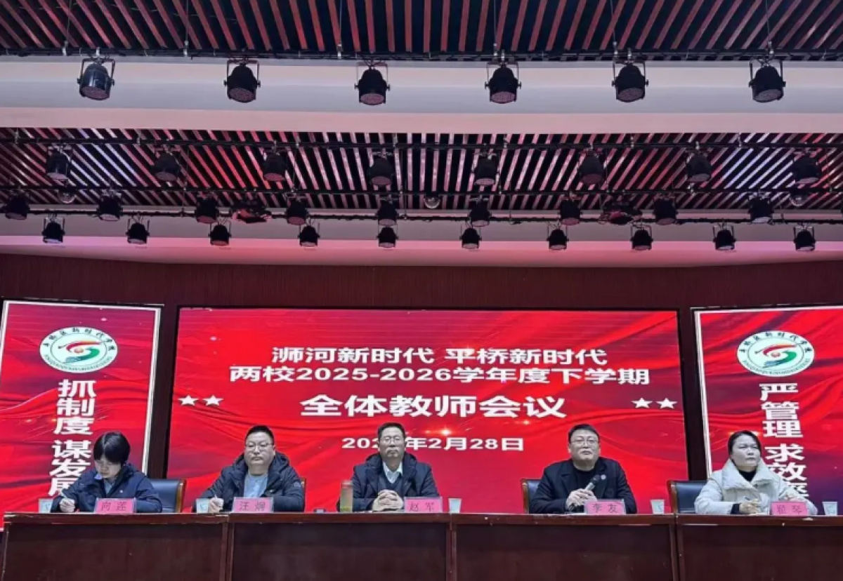 祥风迎新岁,瑞霭绕良辰。为统筹部署新学期各项工作,明确发展目标,凝聚奋进力量,确保开学工作平稳有序、高效推进,2026年2月28日,信阳市新时代学校(平桥校区/浉河校区)全体教师齐聚学术报告厅,隆重召开2026年春季学期开学工作会,为新学期教育教学工作拉开序幕。