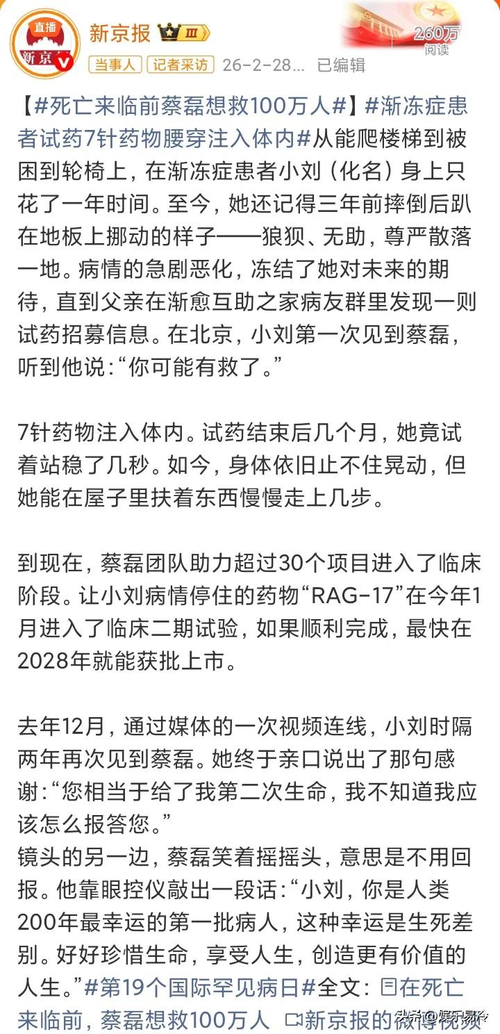 这一天终于要来了,蔡磊已经进入渐冻症终末期,时日无多了!尽管如此,他还是坚持每天工作超过10小时,行动不便就用眼控仪开会跟进项目。救自己已经来不及了,他就用余生给病友创造生的希望,无法用言语形容他的举动,不知道蔡磊是怀着什么样的心情在工作……