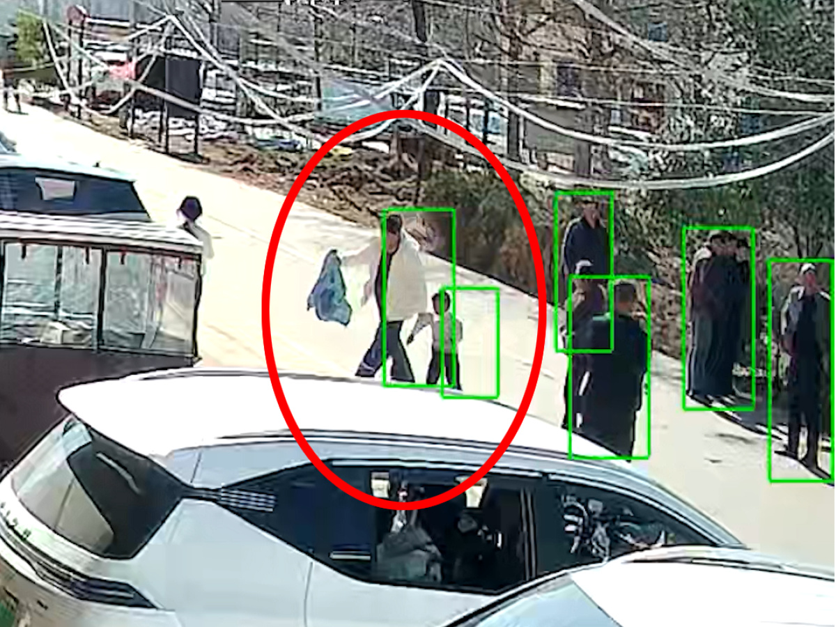 获救的落水儿童和家长(监控视频截图)