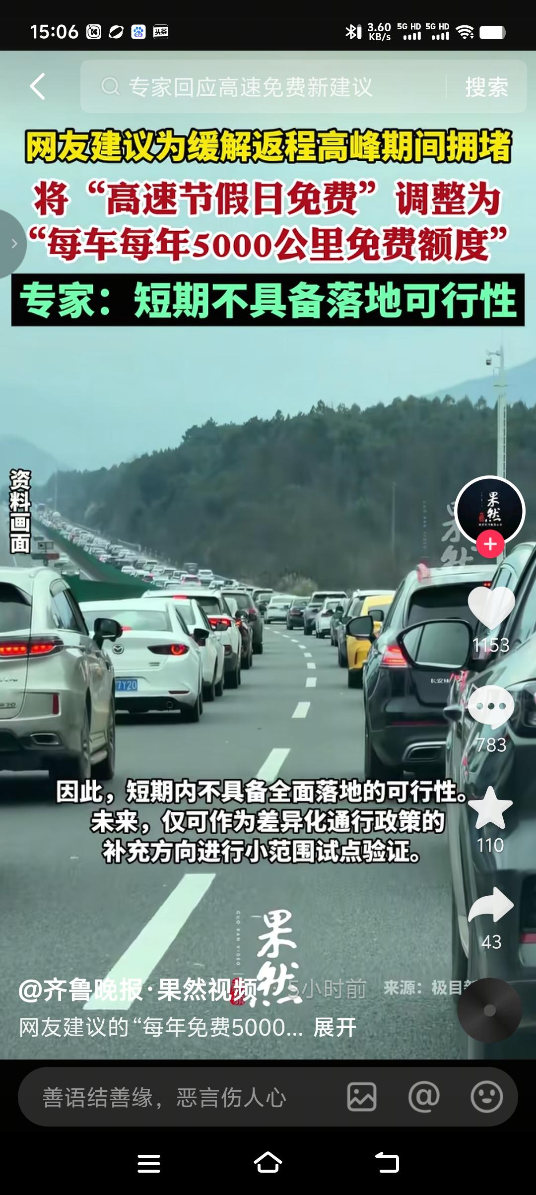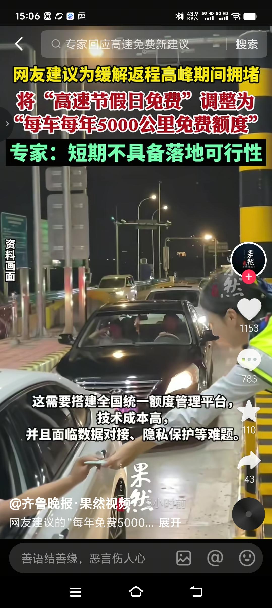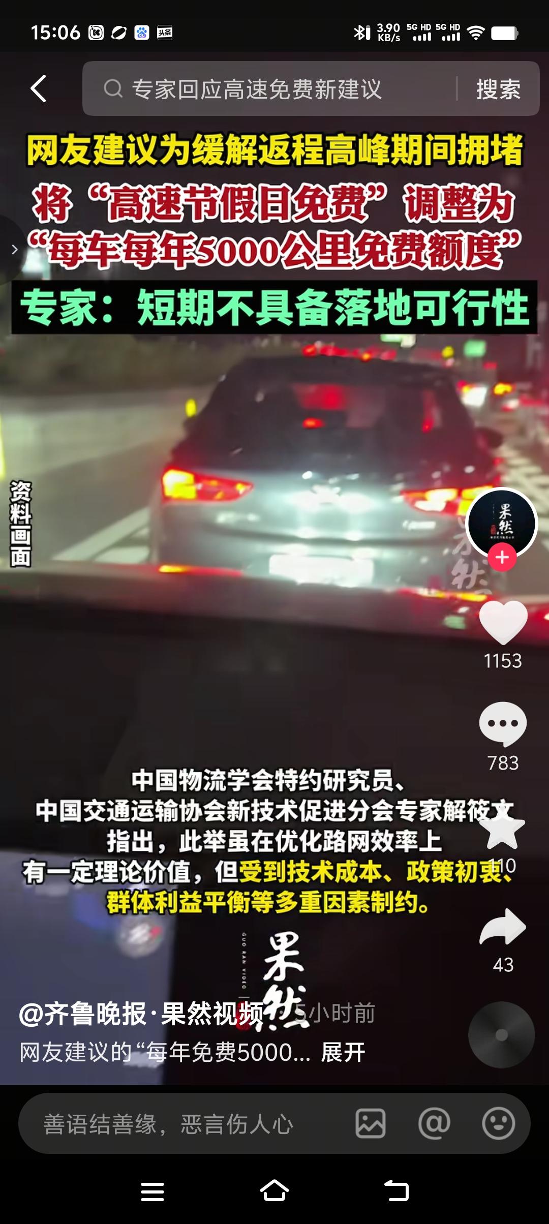 针对节假日高速免费堵车现象,有聪明的网友建议,将节假日高速免费可以调整为每车每年5000公里的免费额度。专家给出的建议是此举虽然在优化路网效率上有一定的理论价值,但受到技术成本,政策初衷、群体利益平衡等多因素制约。 每车每年5000公里免费额度,果真能减少节假日堵车吗?我看未必,换汤不换药,照堵不误。节假日不免费了,改成每年每车5000公里免费额度,遇上节假日,该回家的还是回家,该旅游的还是旅游。对于那些不回家的、不旅游的即便每车每年有10000公里的免费额度也没用。所以说要想缓解节假日高速不堵车最好的办法就是,节假日高速不免费,整体降低高速费价格,你们说这个办法可行吗?