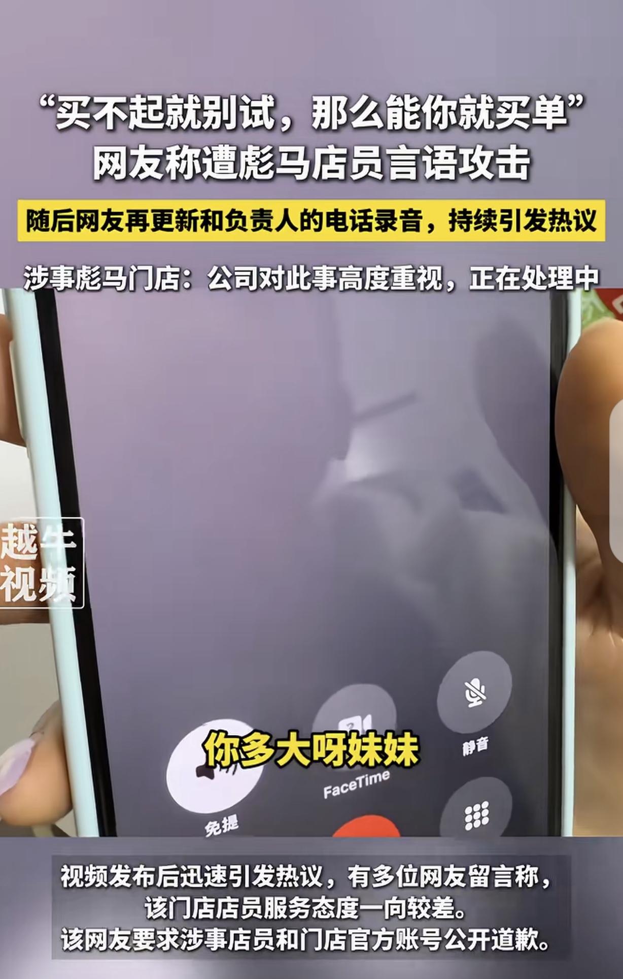 “白嫖被识破了!”山东滨州,一20多岁女子去某品牌店买鞋,第1天试完鞋子没买就离开了,第2天又去试,却被店员给骂了一顿:买不起就别试,那么能你就买单!昨天试了,今天又来试。女子怒了,直接拍了视频发网上,负责人给女子打电话,说道歉可以,但她拍视频曝光,是不是不恰当?女子怒怼:我的账号,我愿意发就发,你管不着。网友:试完了在网上买确实讨厌,骂你不冤。 在山东滨州,有位20多岁的女子去一家品牌鞋店买鞋,没想到竟引发了一场不小的风波。 第一天,女子走进这家品牌店,在鞋架上仔细挑选,看中了几双款式不错的鞋子。 她让店员拿下来,一一试穿。可试来试去,她总觉得不太满意,因为自己当天没穿能搭配鞋子的衣服,穿在脚上根本看不出整体效果。 于是,她没买便离开了鞋店,打算第2天穿合适的衣服再来试试。 第2天,女子精心搭配好衣服,再次来到这家鞋店。她径直走向之前看中的鞋子,让店员再次拿给她试。 可万万没想到,店员直接翻脸,拒绝给她拿鞋子试穿,在一旁阴阳怪气地说:买不起就别试,昨天试了,今天又来试。你那么能,直接买单。 这刺耳的话,让女子瞬间火冒三丈。她怎么也没想到,自己只是正常来试鞋,竟会遭到这样的羞辱。 女子强压着怒火,直接拿出手机,将这一幕拍了下来,然后发到了网上。她想让大家都看看,这家店的服务态度有多差。 视频发到网上后,很快就引起了网友们的关注和热议。有人觉得女子试完鞋可能去网上买,这种行为确实讨厌,店员骂她也不算冤。 但也有人认为,店员的服务态度实在太差,不管顾客买不买,都不应该恶语相向。 很快,鞋店的负责人看到了这个视频,赶紧给女子打电话,想要解决这件事。 负责人先是对店员的不当行为向女子道了歉,但话锋一转,又说女子拍视频曝光这件事不太恰当,毕竟这可能会对店铺的形象造成影响。 哎呦喂,这怎么还有威胁的意思?女子也没惯着对方,回怼,我自己的账号,想发视频就发,谁都管不着。 有人说,先问价格 价格能接受了 就试 要是买不起就别试,丢不起那人。这种人就是,在实体店使,回头网上买,或者别的地方买,这种人很讨厌。 有人持反对意见,买鞋子不能试吗?试了就必须买吗?谁规定的?试完网上买是一种现实,接受不了就不要开店,这种态度,做什么都不行。 店家的这垟说肯定不对,进门就是客,开店啥样的人都能碰到。但是,现在这样的年轻人很多,甚至有专门的白嫖群薅羊毛群,分享白嫖攻略心得,不以为耻反以为荣,道德素质世风日下。 其实在这件事里,双方都有做得不对的地方。女子正常试鞋,这是她的权利,就算她之后选择去其他地方购买,店员也不应该恶语伤人。 店员作为服务行业的一员,本应热情耐心地为顾客服务,却因为自己的主观臆断,对顾客恶语相向,这显然违背了服务行业的基本准则。 女子在遭遇不公对待后,选择拍视频曝光,虽然可以理解她的愤怒,但这种方式或许有些冲动,可能会引发不必要的网络纷争。 无论是消费者还是服务者,都应该多一些理解和包容,遇到问题时冷静沟通,这样才能避免类似的矛盾再次发生。 《消费者权益保护法》规定,消费者享有自主选择商品或者服务的权利,有权对商品进行比较、鉴别和挑选。 在此次事件中,女子2次到店试鞋是行使消费选择权的合法行为,店员以“买不起就别试”为由拒绝并辱骂,侵犯了消费者的自主选择权与人格尊严权,店家需为此承担赔礼道歉等民事责任。 而女子公开店铺不当行为,是合法的舆论监督,未侵犯店家权益,无需承担责任。 对此,你怎么看?