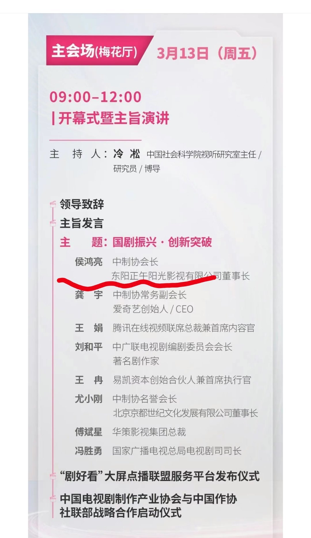 2026中国电视剧制作产业大会——侯鸿亮3月13日要去深圳参与行业论坛了,好想问