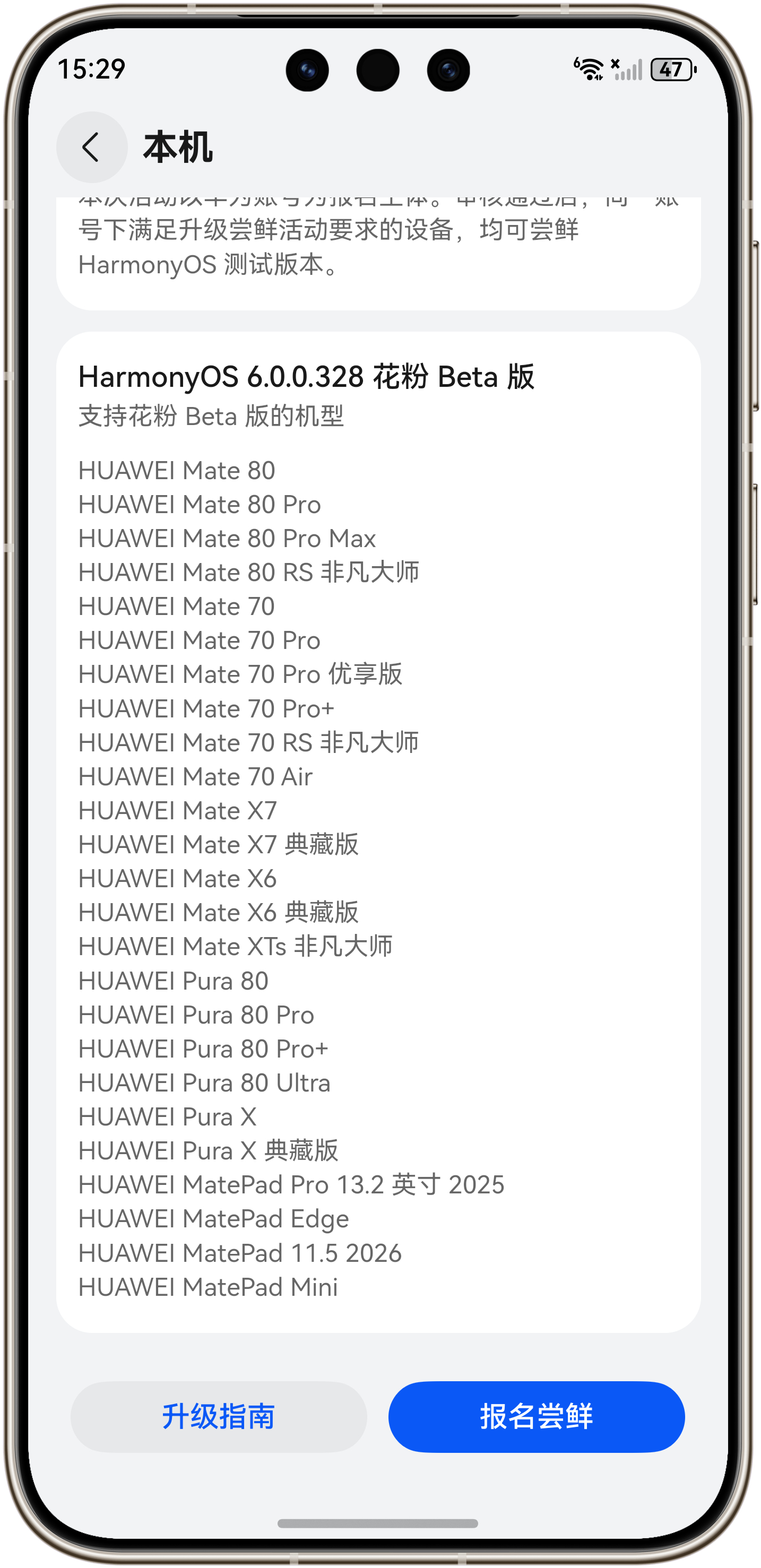 Harmony OS 6.0.0.328版本今天开启花粉Beta申请,我把同一个账号手上能升级的几台机器都已经报上名了