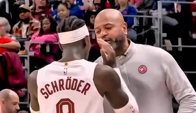 骑士新援施罗德真是太嚣张了!在今日骑士对阵活塞的末节比赛中,场上比分胶着。突然,骑士替补席附近传来激烈的争吵声。只见施罗德情绪激动,对着活塞主帅比克斯塔夫大声嚷嚷,而比克斯塔夫也毫不示弱,两人在场边针锋相对。