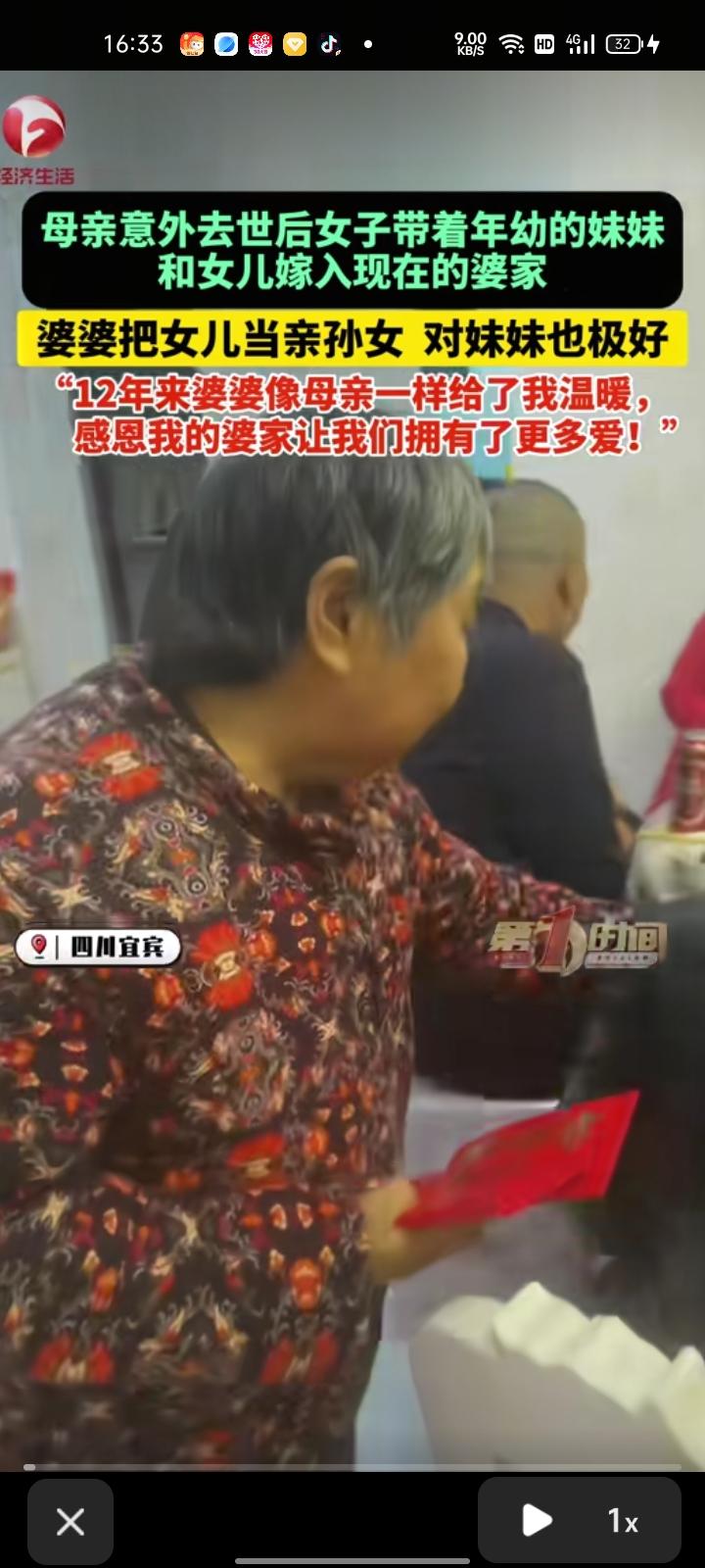 2月18日,四川宜宾。钟女士称,自己带着女儿和妹妹嫁入现在的婆家。母亲意外去世时,妹妹八岁,女儿一岁多,自己也和前夫离了婚,经人介绍后和现在的老公结了婚。把妹妹和女儿带进婆家,婆婆把女儿当成亲孙女,对妹妹也很好,每年过节都会为他们准备红包。十二年来,婆婆像母亲一样给予温暖,感恩婆家让我们拥有更多的爱。