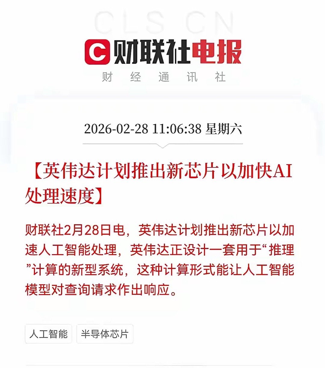 利好,重大利好消息!Al芯片板块迎利好,英伟达计划推出新芯片,以加快AI 处理速度,这波算力硬件的红利更实在英伟达又给AI算力加速了,要推专门用于“推理计算”的新芯片系统,目标是让AI模型对用户查询的响应更快。这不是“芯片性能的小升级”,是盯着AI商业化的“痛点”发力:现在大模型训练成本已经降了,但用户用AI时的“卡顿、延迟”,是影响体验的关键,而推理芯片就是解决这个问题的核心。先搞懂“推理芯片”的价值:AI产业链里,“训练”是让模型学会干活,“推理”是让模型实际帮用户干活——比如你用AI写文案、问问题,背后都是推理计算。现在OpenAI、国内大模型的调用量越来越大,用户同时发请求时,推理算力不够就会“排队等响应”。英伟达这波新芯片,就是把推理的速度和效率再提一档,让AI能同时接住更多用户的请求。更重要的是,这波动作是“跟着需求走”:之前英伟达靠H100/H200吃了训练算力的红利,现在AI商业化往“大规模落地”走,推理算力的需求会比训练更持久——毕竟训练是“一次性投入”,推理是“每天都要用”。英伟达推推理新芯片,等于把“训练+推理”的算力市场都攥在手里。落到产业链,这波“推理算力升级”最受益的是“芯片配套+算力硬件+AI应用”标的:1. 芯片核心配套(直接绑定英伟达)中际旭创(A股):800G/1.6T光模块龙头,推理芯片集群的高速通信依赖其光模块;