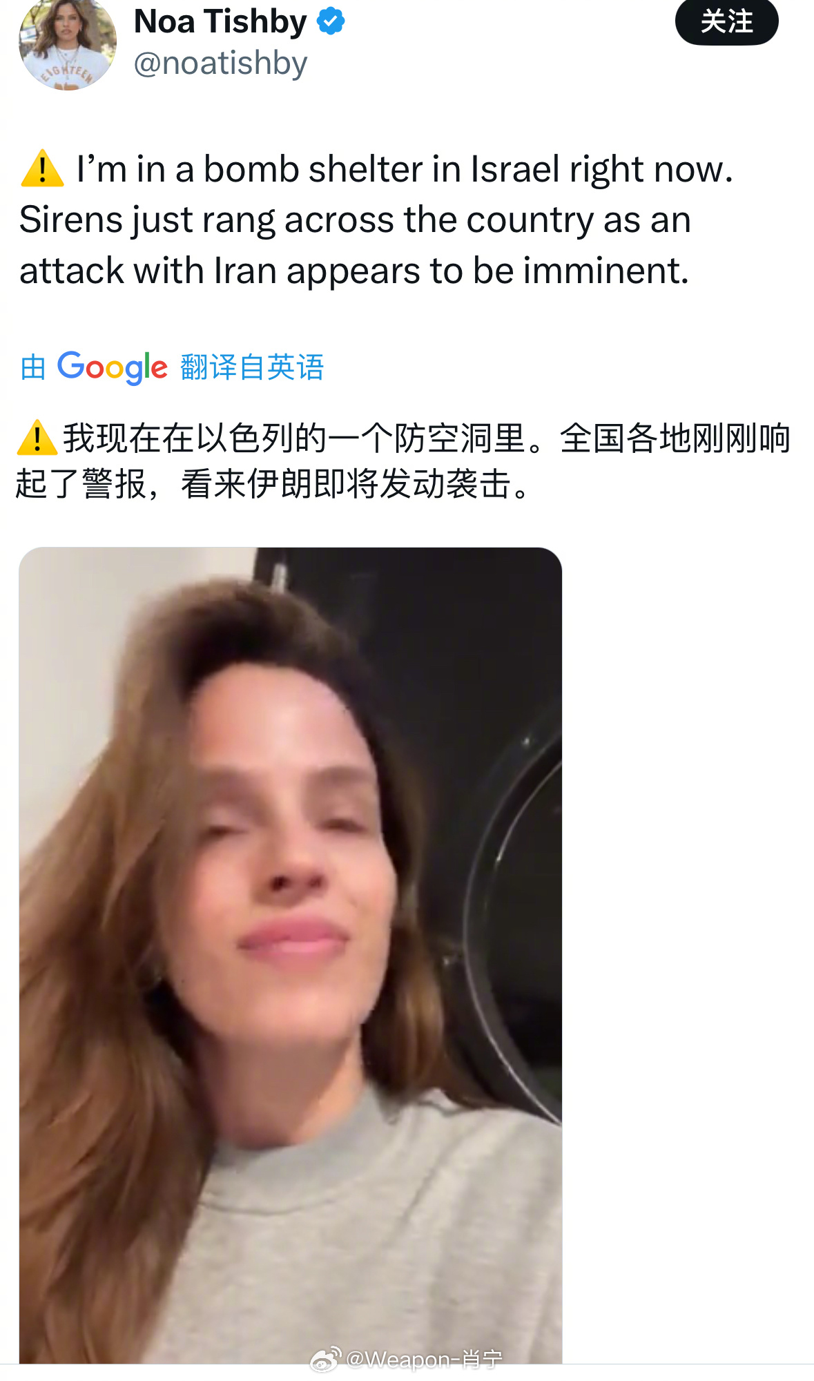 烽火问鼎计划 一名犹太女子发帖说自己因为伊朗的空袭警报而躲在防空洞,一名网友在回复中提醒她,犹太人先发射导弹打击伊朗,伊朗只是反击而已,别太矫情。