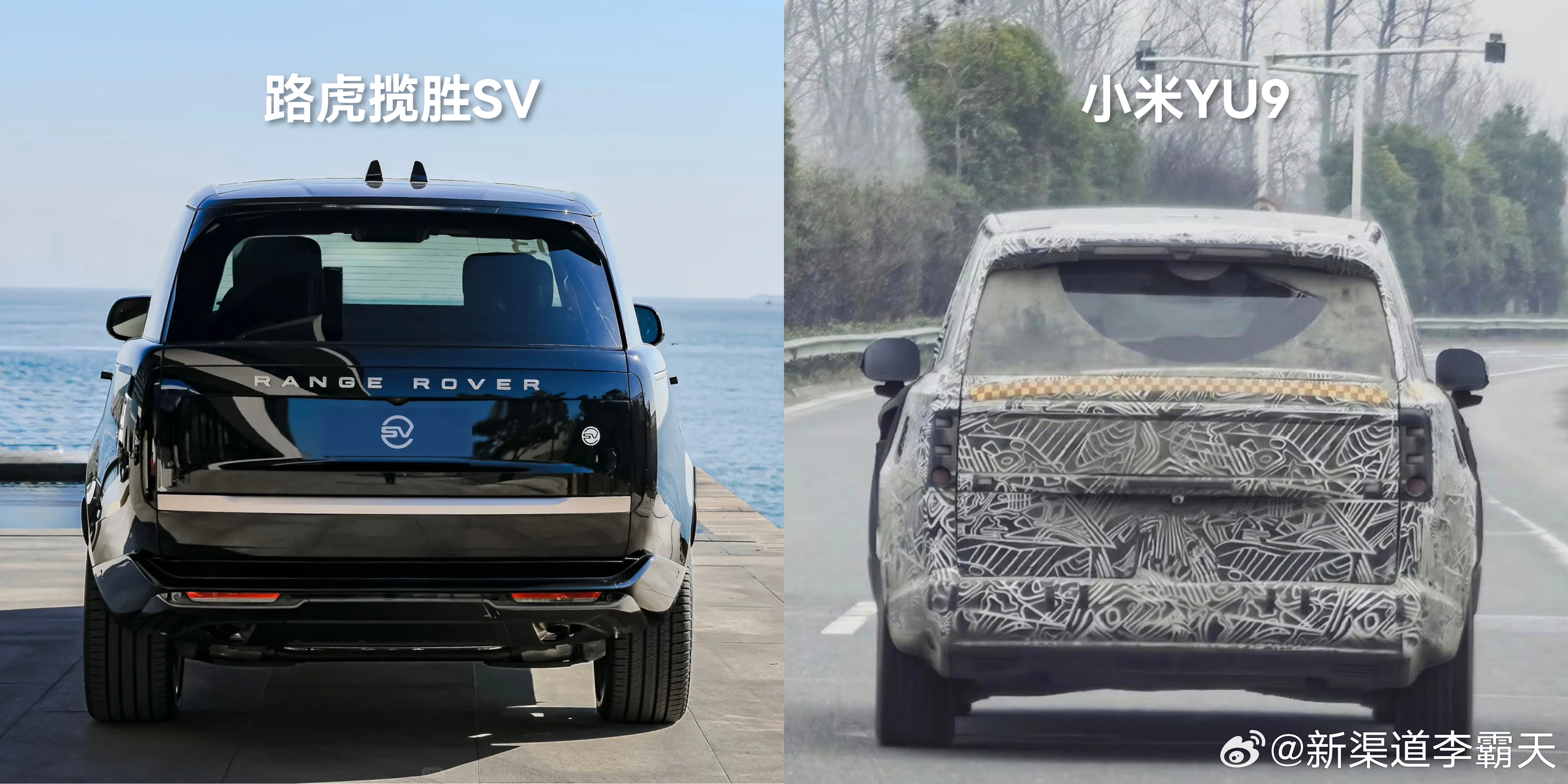 从伪装谍照来看,小米 YU9 的轮圈有点窄,车尾视觉上有点小气,对比路虎揽胜,气场还是有差距(图1)。