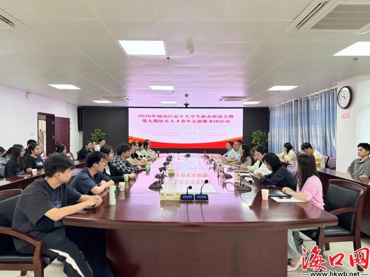 海口网2月28日消息(记者云梦怡特约记者许晶亮)2月28日,海口琼山区举办2026年返乡大学生新春座谈会暨第九期星火人才青年志愿服务团人才政策宣讲活动。来自中国海洋大学、中国地质大学等省外高校的28名琼山籍优秀学子代表齐聚一堂,共叙乡情、共话发展、共绘未来。