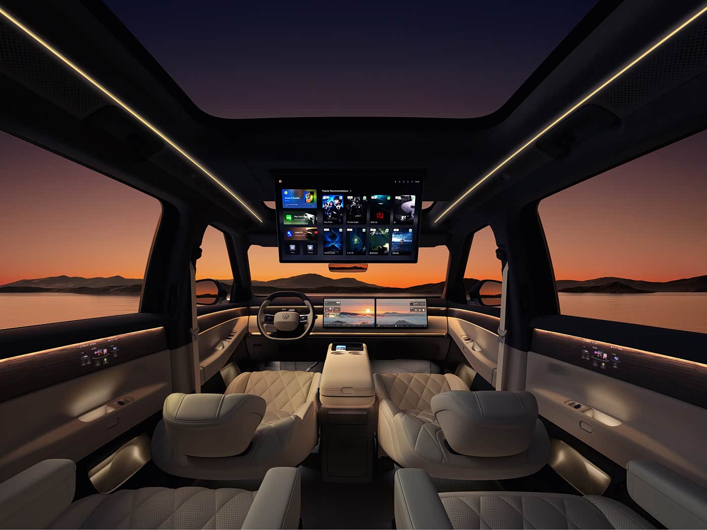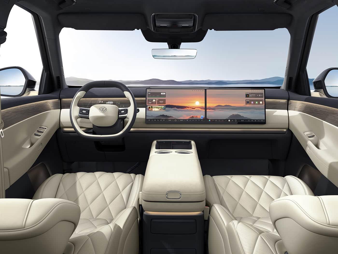 上汽大众ID. ERA 9X内饰官图,前排双屏+后排吸顶屏。