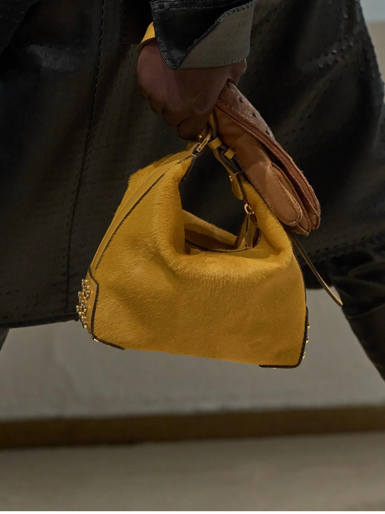 这季包包轮廓更柔和,强调“包裹感”。材质是这一季的核心语言。顺滑小牛皮、细腻小马毛,让包袋在视觉之外更强调触感。