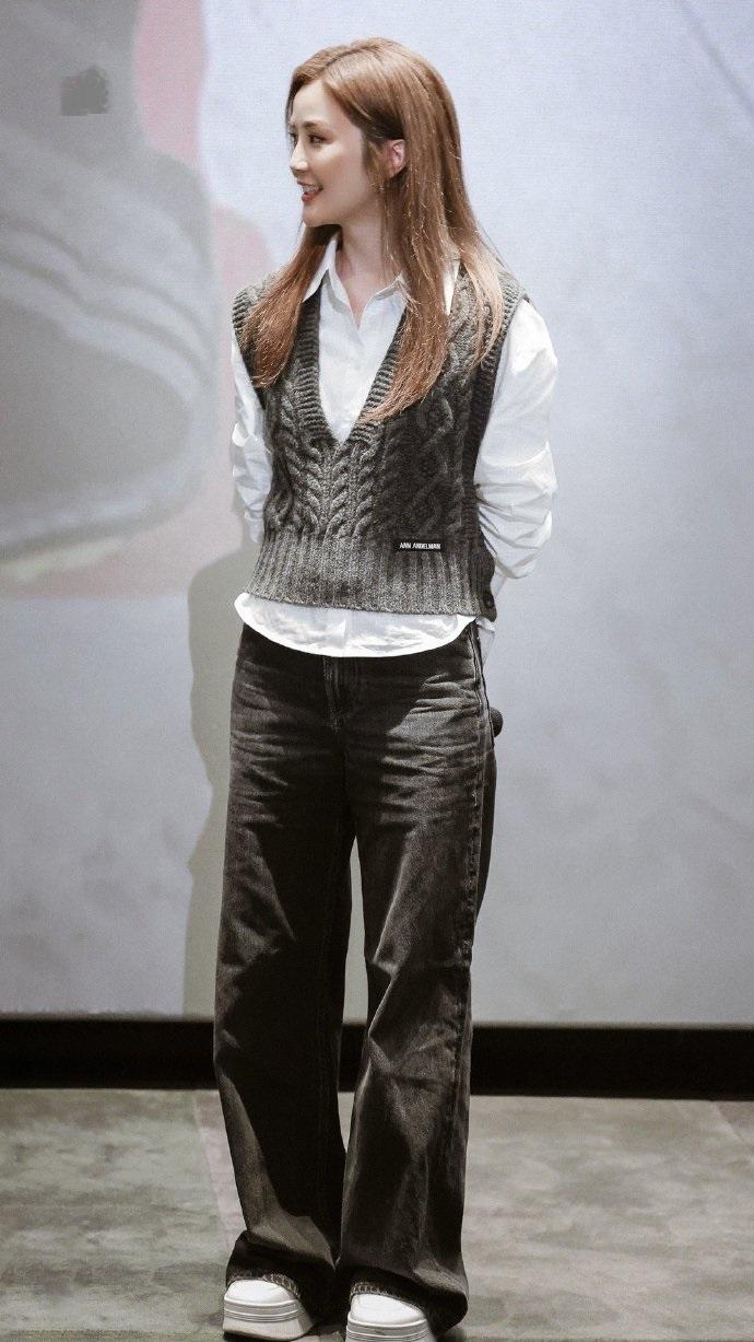 最近蔡卓妍参加谢票会,她这次穿了一身灰色的衣服,看起来很有高级感。 蔡卓妍里面穿白色的衬衣,外面套装深灰色的V领毛衣,两件衣服得穿起来效果很不错。 她下身穿深灰色牛仔裤,脚踩白色的厚底小白鞋,不仅增添了活力之美,还很有运动时尚风情。 蔡卓妍的身材保持的也很好,这回穿的很宽松,彰显出了洒脱迷人的气质。 她还留着迷人的披肩长发,画着精致的妆容,尽显淑女风情,笑起来还非常的甜美,不得不说蔡卓妍这次的搭配效果很出众。