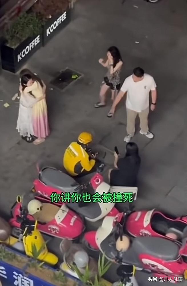 一外卖小哥送餐的时候,在马路上撞S了一条未牵绳的狗。很快他就被几个人围上,先是对他进行辱骂和言语攻击。小哥解释说狗突然串出来避让不及,不是故意的,但这四女一男并未听他解释,而是情绪激动的哭泣和辱骂。其中一个传长裙的女子率先对被拦下后蹲在地上的小哥出手,对其进行拳打脚踢。一旁传来黑衣女子的喊声:打他!打他!长裙女子打了一阵,估计打累了,手也打疼了,就跑到旁边一个摩托车上坐着痛哭,看得出来狗被撞了确实很伤心。此时旁边那个男的上来指着小哥说,你该庆幸你活对了地方!言下之意就是如果不是F律保护,他会下狠手!但他确实没有出手打小哥,只是用语言诅咒,说小哥早晚也会被撞S!这个男的骂完走到一边,另一个女子走到小哥身边,哭着开始对他拳打脚踢,无奈她力气终究有些小,小哥蹲那里一动不动任务呢她打,看上去也没什么事,反而是那个女的踢打一阵后累了停了下来。此时男子又返回对着小哥一阵言语输出,小哥刷着手机可能是在跟人发信息,那男的让他随便叫人。这个过程中小哥没再说一句话,也没移动一下。刚才打小哥那女的可能是歇了会力气恢复了,有开始哭着踢打小哥,并且比刚才更用力!在发现无法有效伤害到小哥之后开始抓扯小哥头盔、击打他头部,但小哥头盔戴得很紧,她扯不下来,只能又开始踢打。奇怪的是,那女子只有在打小哥的时候开会哭泣,打完马上就不哭了。她打累了就歇一会,歇好了又开始打,她一个人这样在有限的视频记录里,就打了小哥四次!这一幕实在让人愤怒!她们如果真的爱狗,就该在出门遛狗的时候牵上绳子,让狗在街道上乱串,又是晚上。人家小哥送餐争分夺秒的求生活,速度开得快是肯定的。骑手为了争取一分钟的时间,把自己摔伤的多不胜数。他们不知道这样不安全吗?那是没有办法!而且狗命能跟人命比吗?一副恨不得要打S人家的样子,诅咒人家被撞S,有一丝作为同类、同胞的感情吗?!爱狗你就保护好它,别等它出了事把责任全转嫁到别人身上!而且女的打人并不是不违F,哪怕没有受比较严重的伤。这种事小哥应该及时报J,不该觉得撞S了人家的狗,自己就错了!