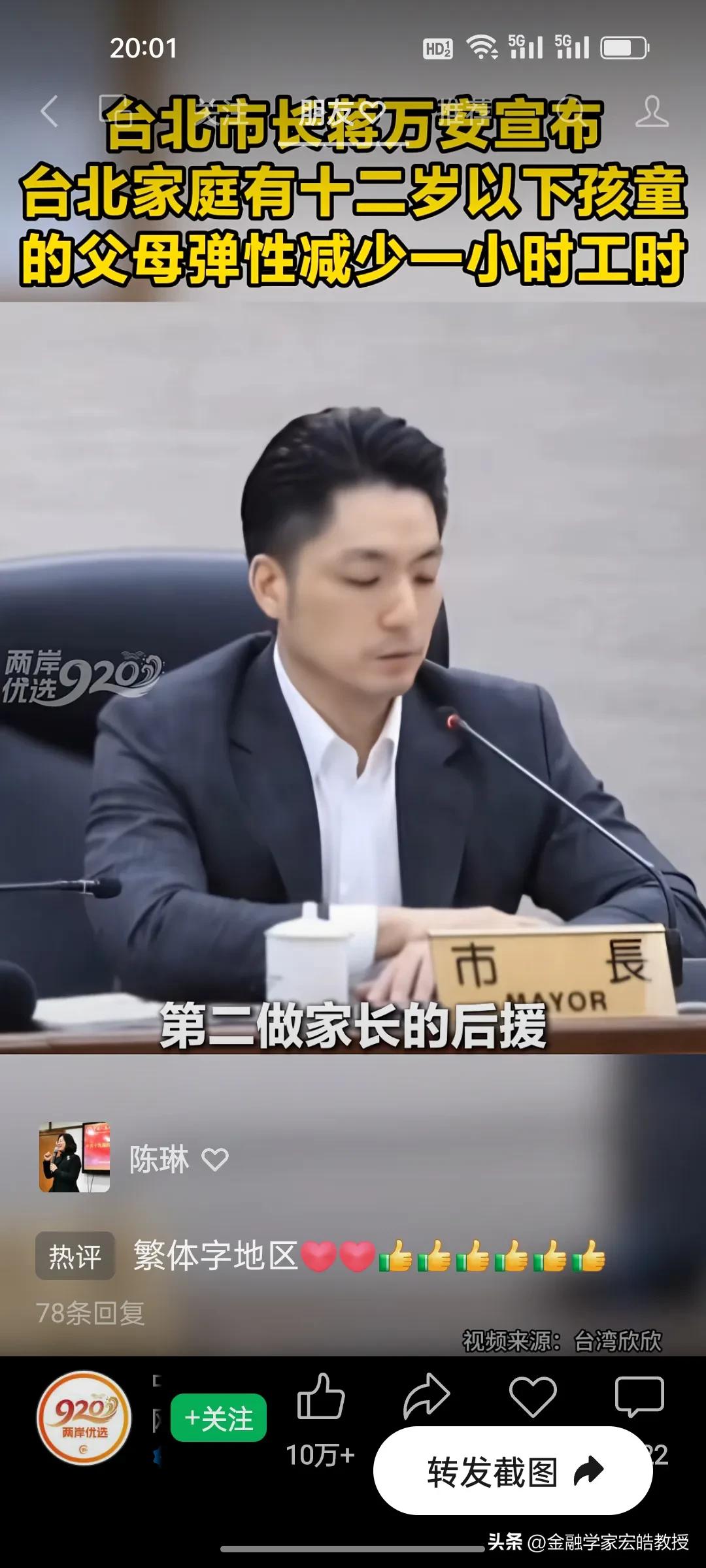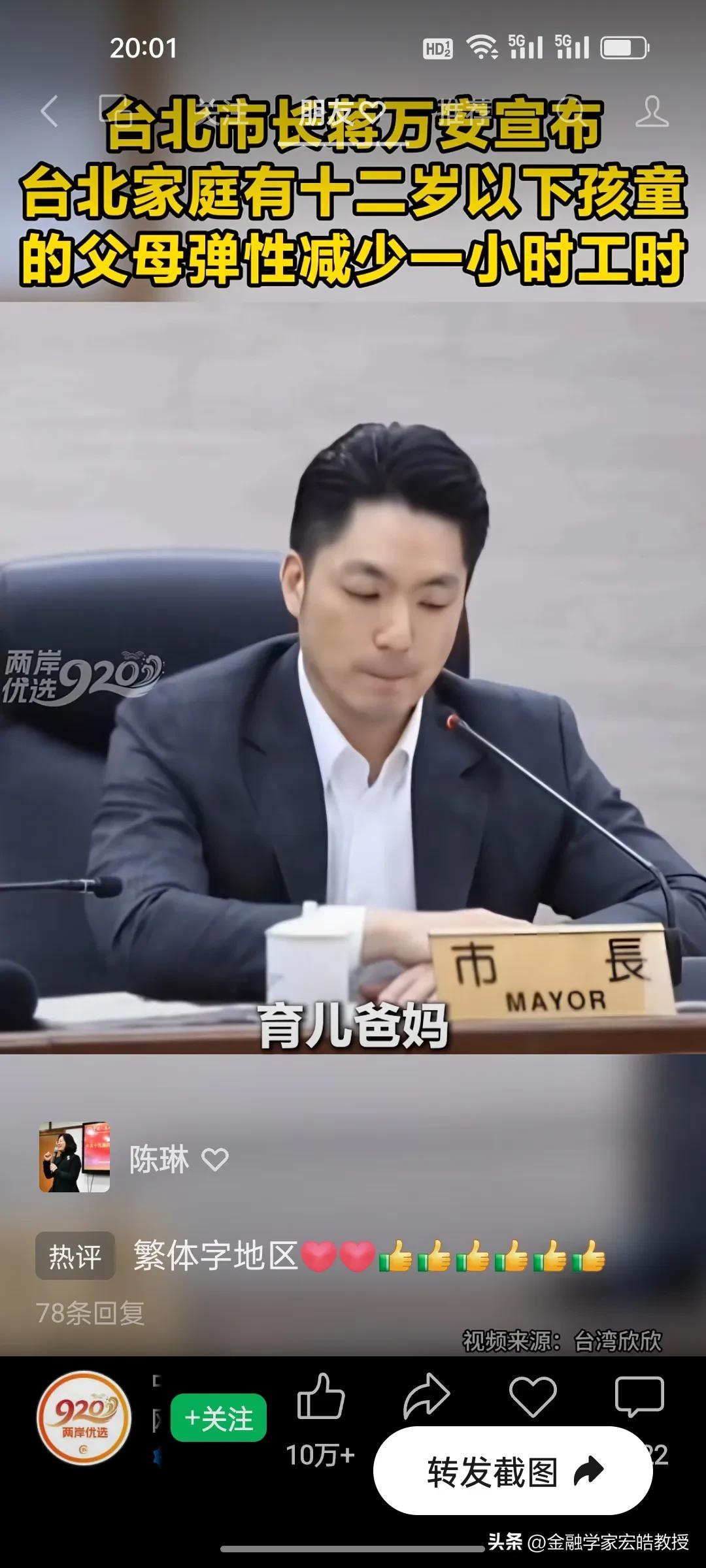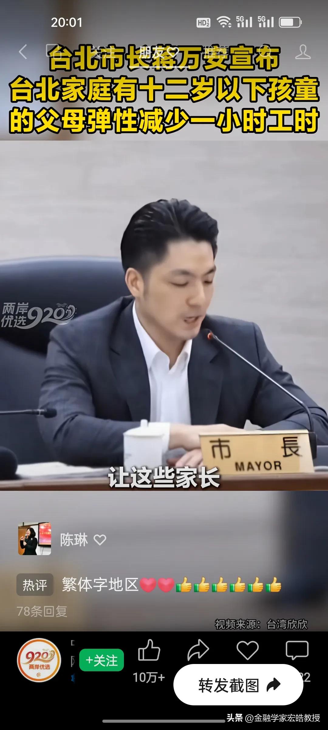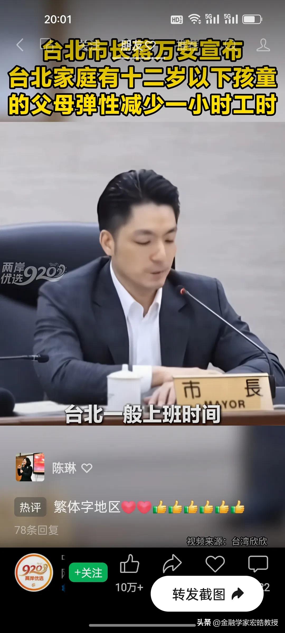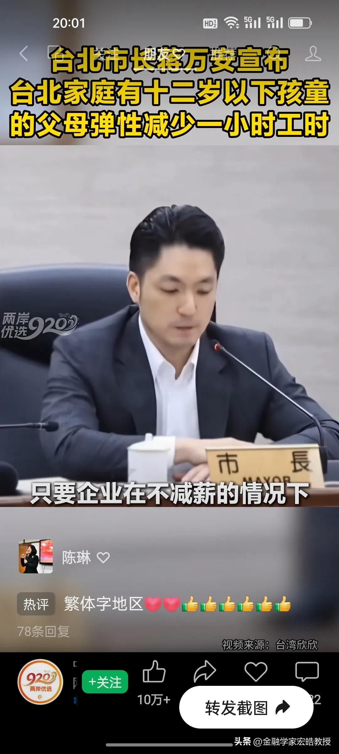 台北市长蒋万安官宣重磅新政明天起实施,12岁以下孩童父母直接受益,这波得人心的操作又圈粉了! 台北育儿家长的“接娃焦虑”,终于有了破局方案!蒋万安官宣重磅新政,明天3月1日起正式落地。 新政直击痛点:家中有12岁以下孩童的父母,可弹性减少每日1小时工时,且企业不得减薪,差额由市府补贴八成。家长能自主选择早到或晚退,精准匹配孩子上下学时间,彻底告别赶场接娃的慌乱。 这一举措既给企业减负,又给家长松绑,实实在在解决了民生难题。正如蒋万安说“让每一位敢生愿生的家长知道,在台北培养下一代,你不是孤军奋战。” 网友纷纷点赞这位得民心的市长:这才是为民办实事的样子,期待政策顺利落地,让育儿家庭真正受益!
