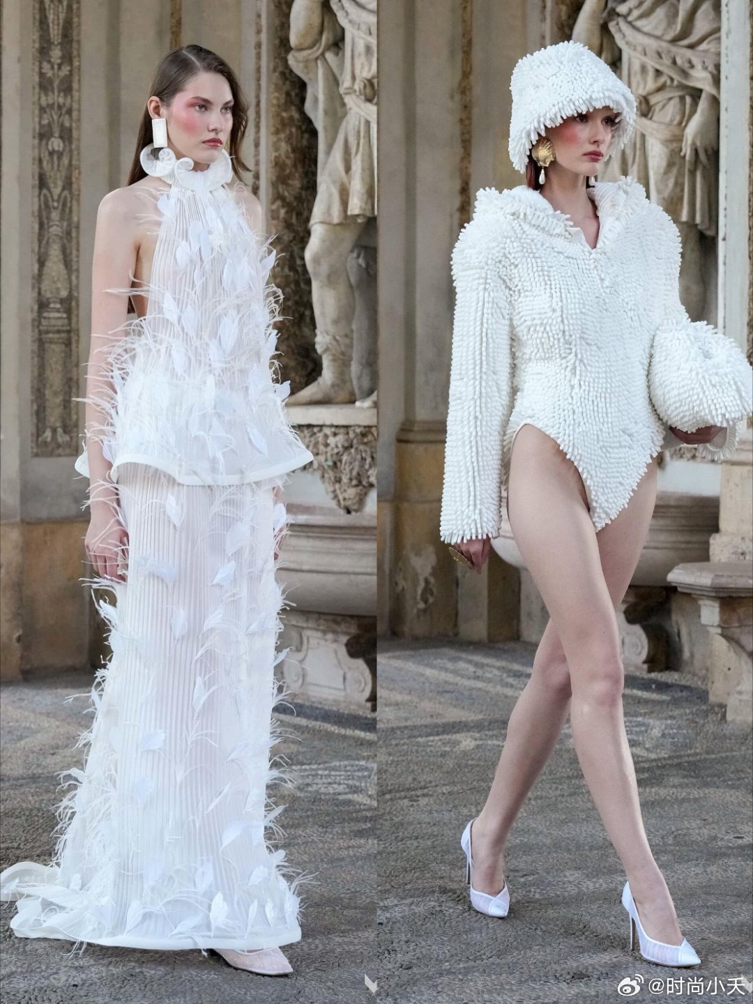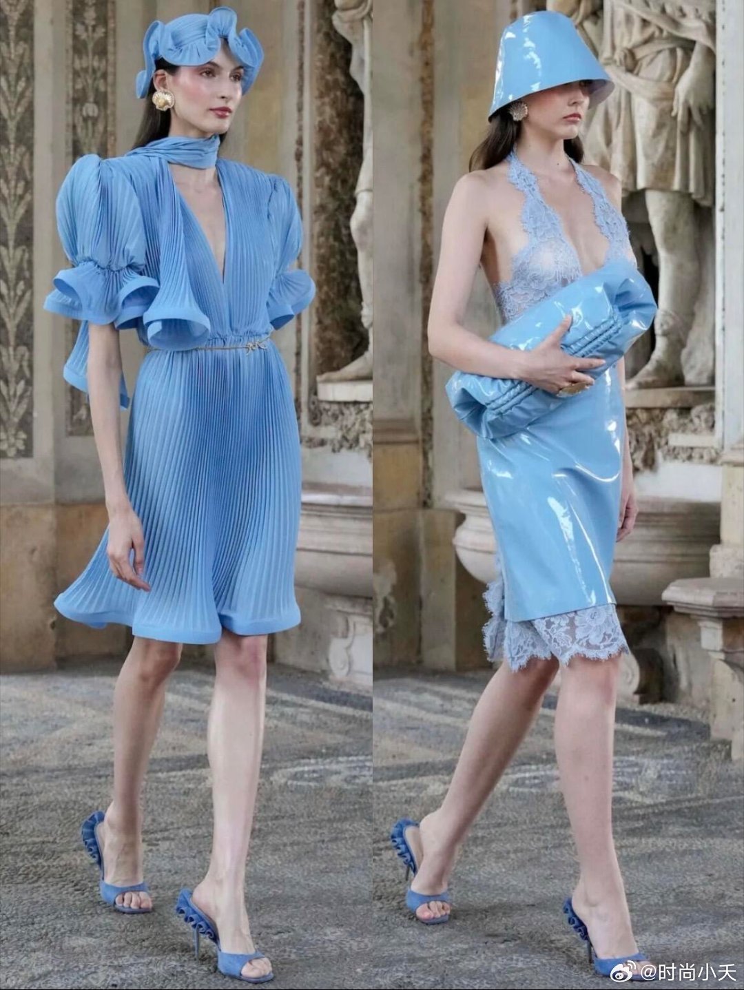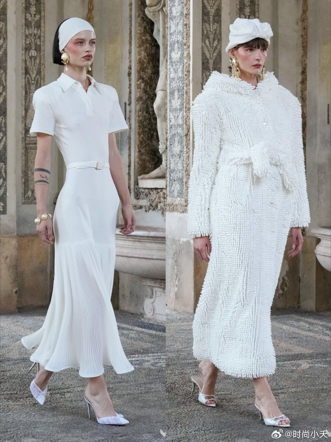 Rowen Rose 2026ss这秀场细节太可了米兰时装周时装周普通人怎么看时装周设计灵感源自古罗马/古希腊公共浴场文化,提炼“仪式感与松弛感。这场秀有一种雕刻美,主打法意混血美学与二元对立的设计哲学,男女混合秀场,利用白色和高饱和的蓝色为基调,搭配绿色、陶土棕等营造一种度假氛围。