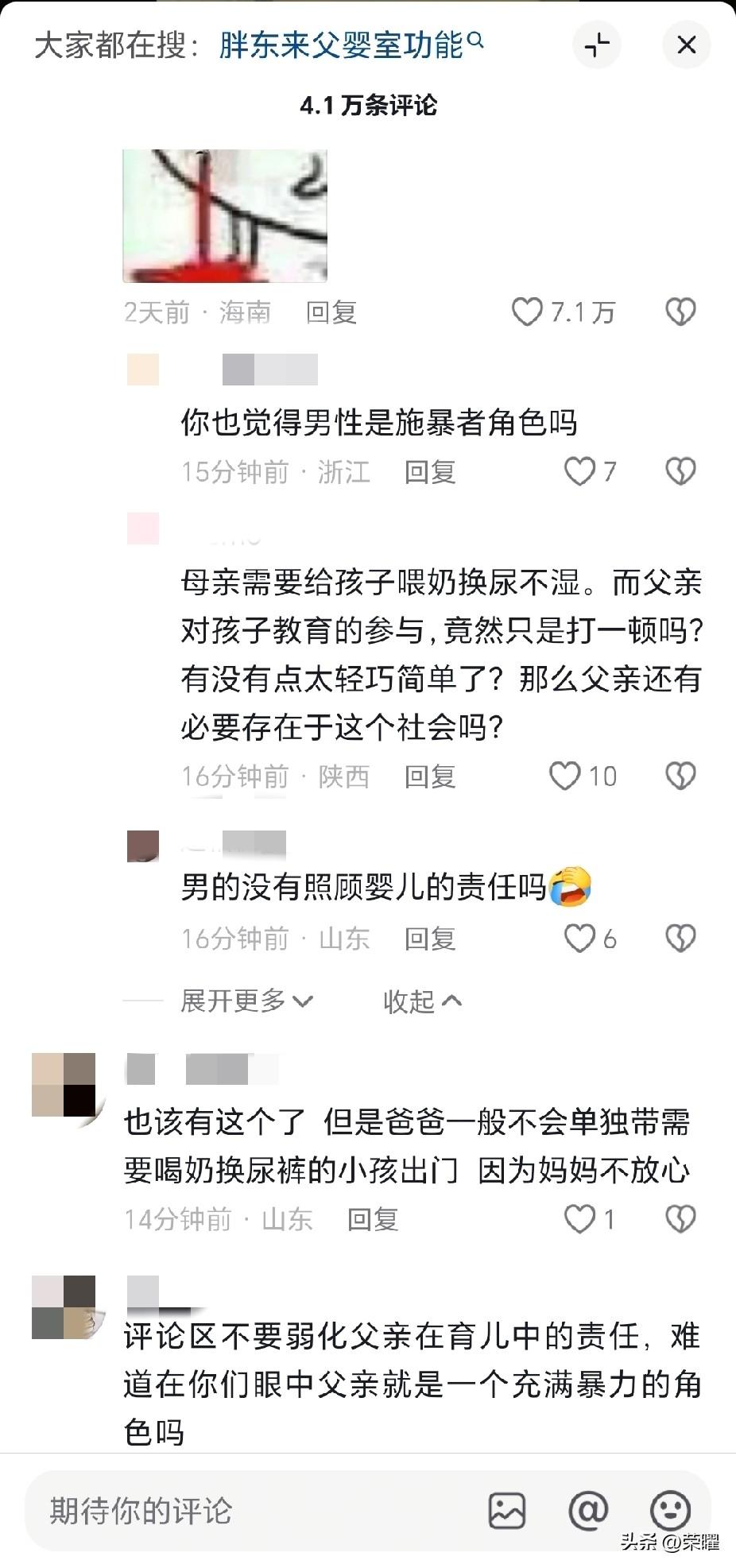 看到这个视频 第一反应是人性化 感觉是告诉很多人,照顾孩子不应该是母亲一个人的事儿, 是一件开心的事情。 评论区里 我以为大家的讨论方向应该是表扬父婴室的出现,但结果评论区好多都在说爸爸在父婴室打小孩儿。 这个世界是怎么了? 记录我的2026 胖东来 分享一下今日感悟