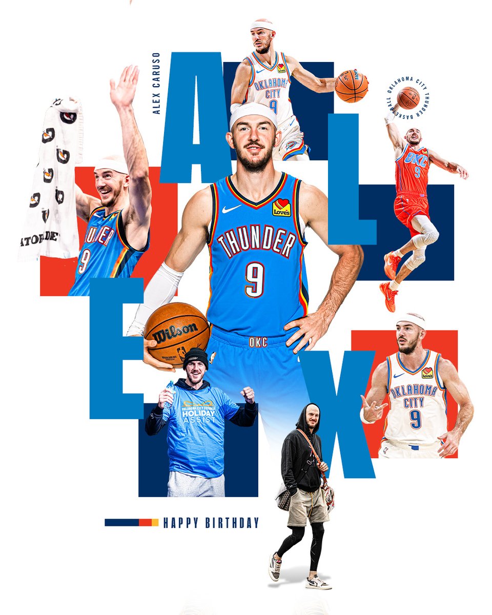 虎扑02月28日讯雷霆官方更新X,晒出一张雷霆球员亚历克斯-卡鲁索的照片并为其献上生日祝福。