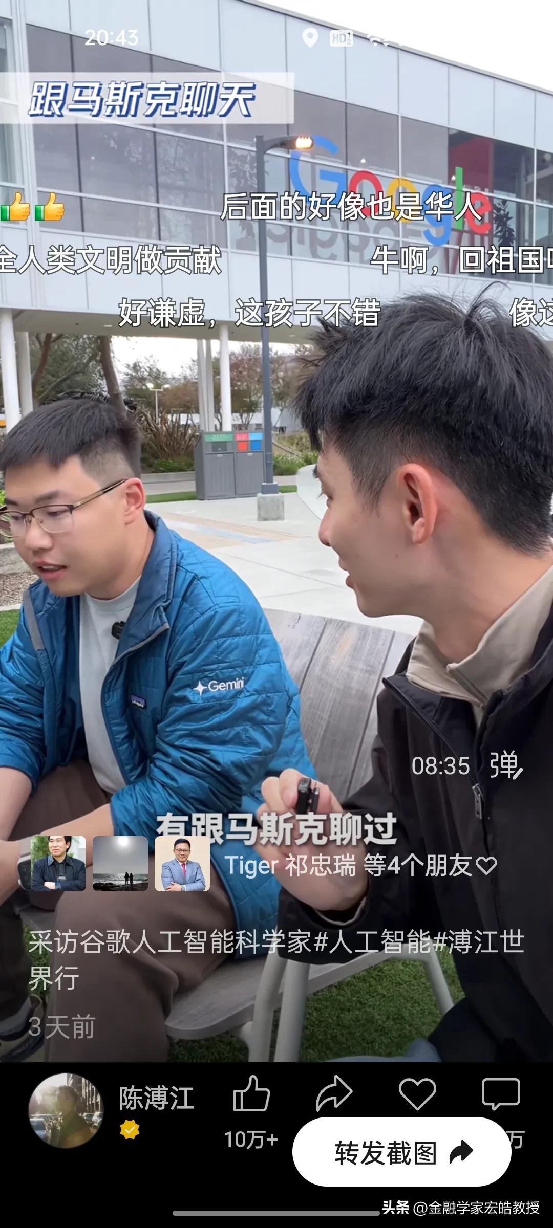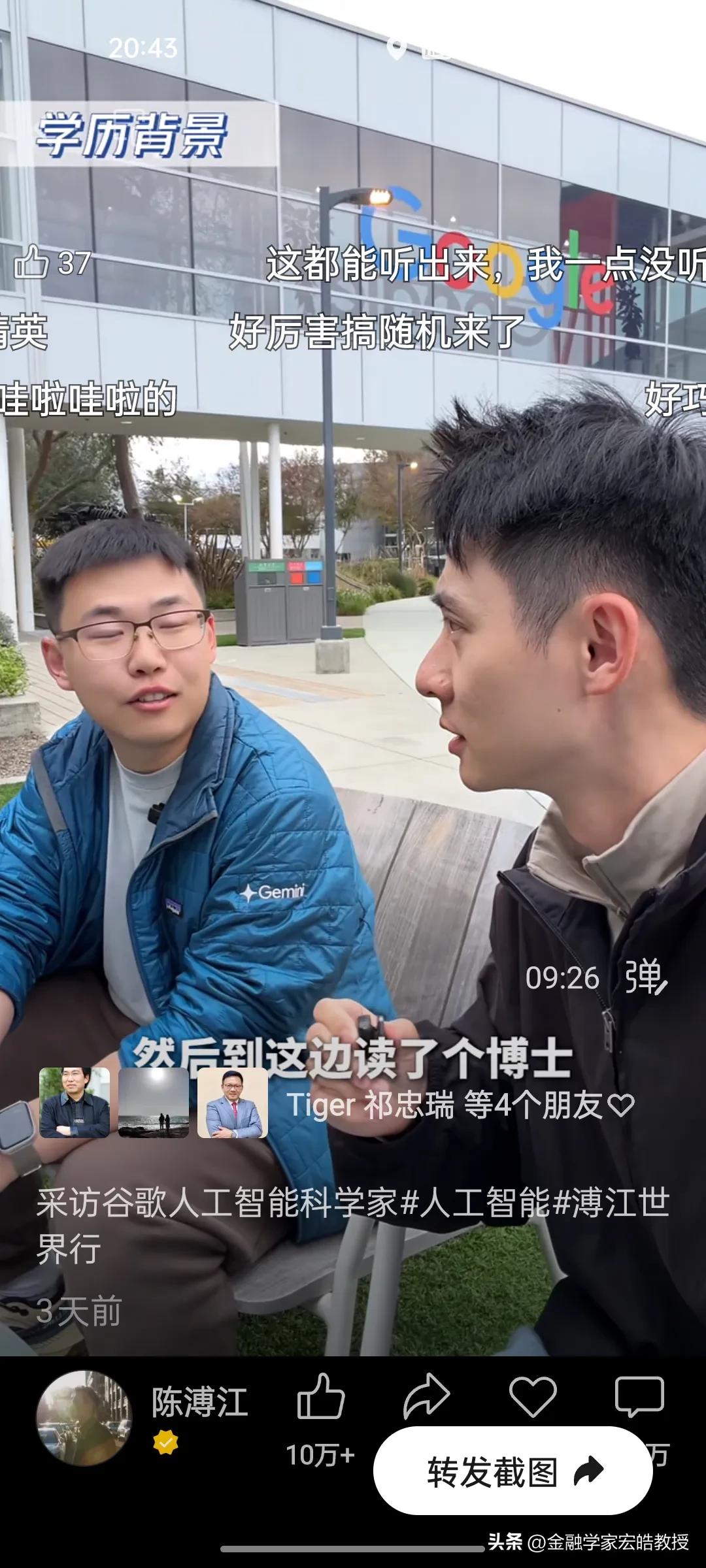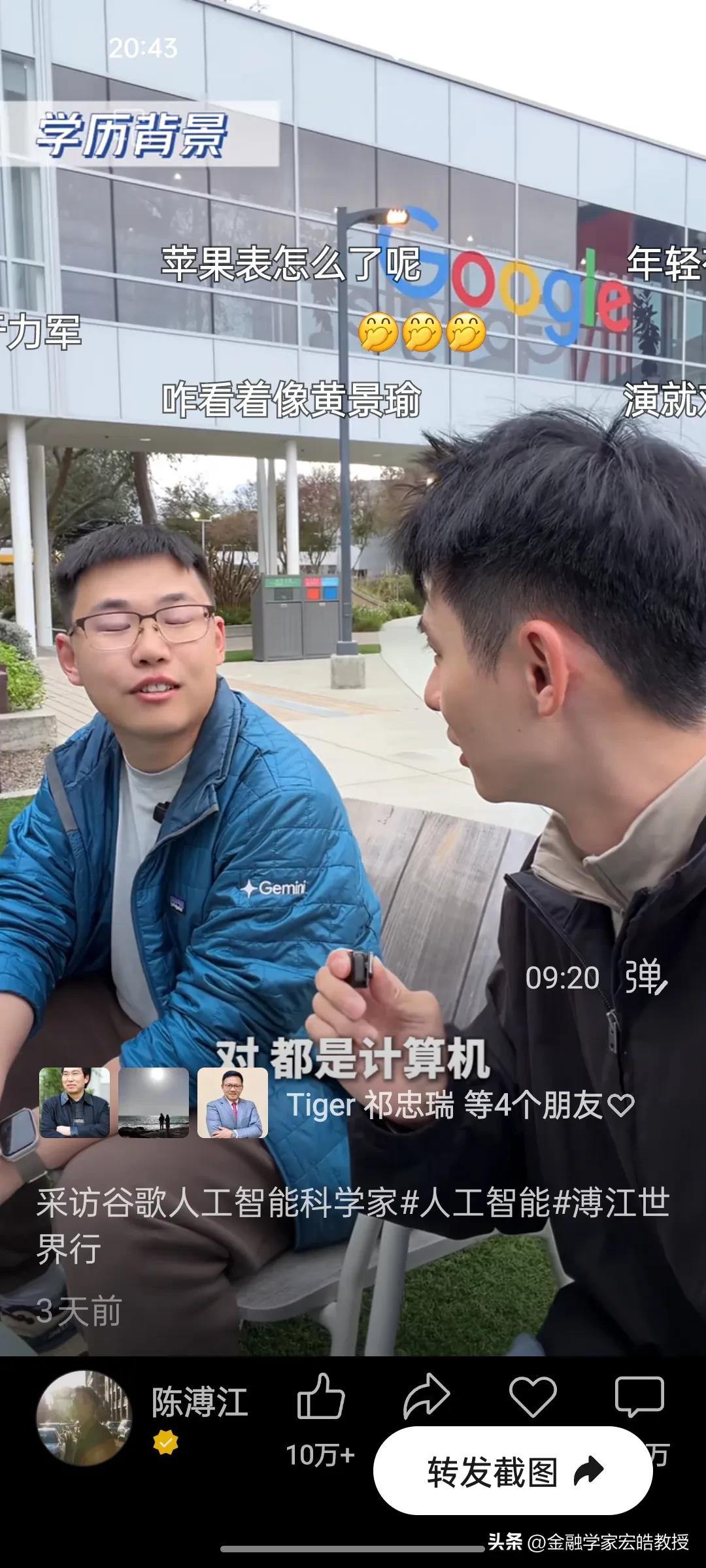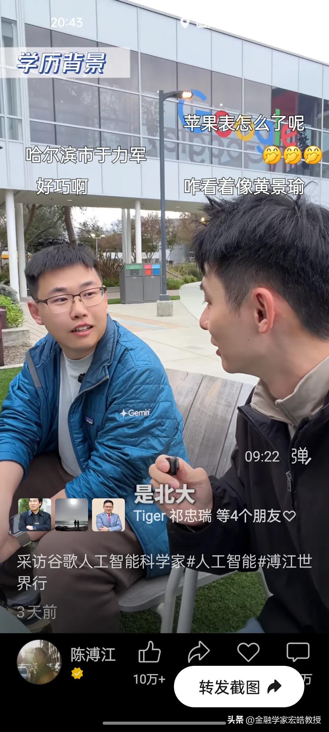 清北学霸在硅谷干AI工作年薪千万?真相扎心了! 刚刚看到陈溥江三天前在谷歌总部采访Gemini的AI科学家于力军的视频火了,里面的几个数据,直接戳破了很多人对硅谷的想象。 于力军透露,他是北大计算机专业本科毕业去美国卡耐基梅隆大学读博士,这所大学在计算机、AI领域是世界天花板级别。他毕业后去马斯克的XAI面试过,也去字节跳动跟张一鸣面试过,像他这样的AI人才,如果去马斯克的公司,年薪能到1亿人民币,而在谷歌这类大厂,普通AI从业者的年薪也在100万到1000万美金之间,上不封顶。当然有的公司要从早上十点干到半夜三点,一周要工作八九十个小时,工作强度很大,比中国还要卷。更扎心的是,他说清北毕业的AI人才,在硅谷一抓一大把,很多人早已成为核心团队的顶梁柱。 一边是高薪诱惑,一边是祖国召唤。今天看到西湖大学官宣了20位90后博导,其中八成都是美国高校博士毕业,也有美国卡耐基梅隆大学博士毕业的。这些顶尖人才的选择,不仅关乎个人发展,更关乎国家科技未来。我们期待更多“于力军”们,带着技术和经验回国,让中国AI真正领跑世界!