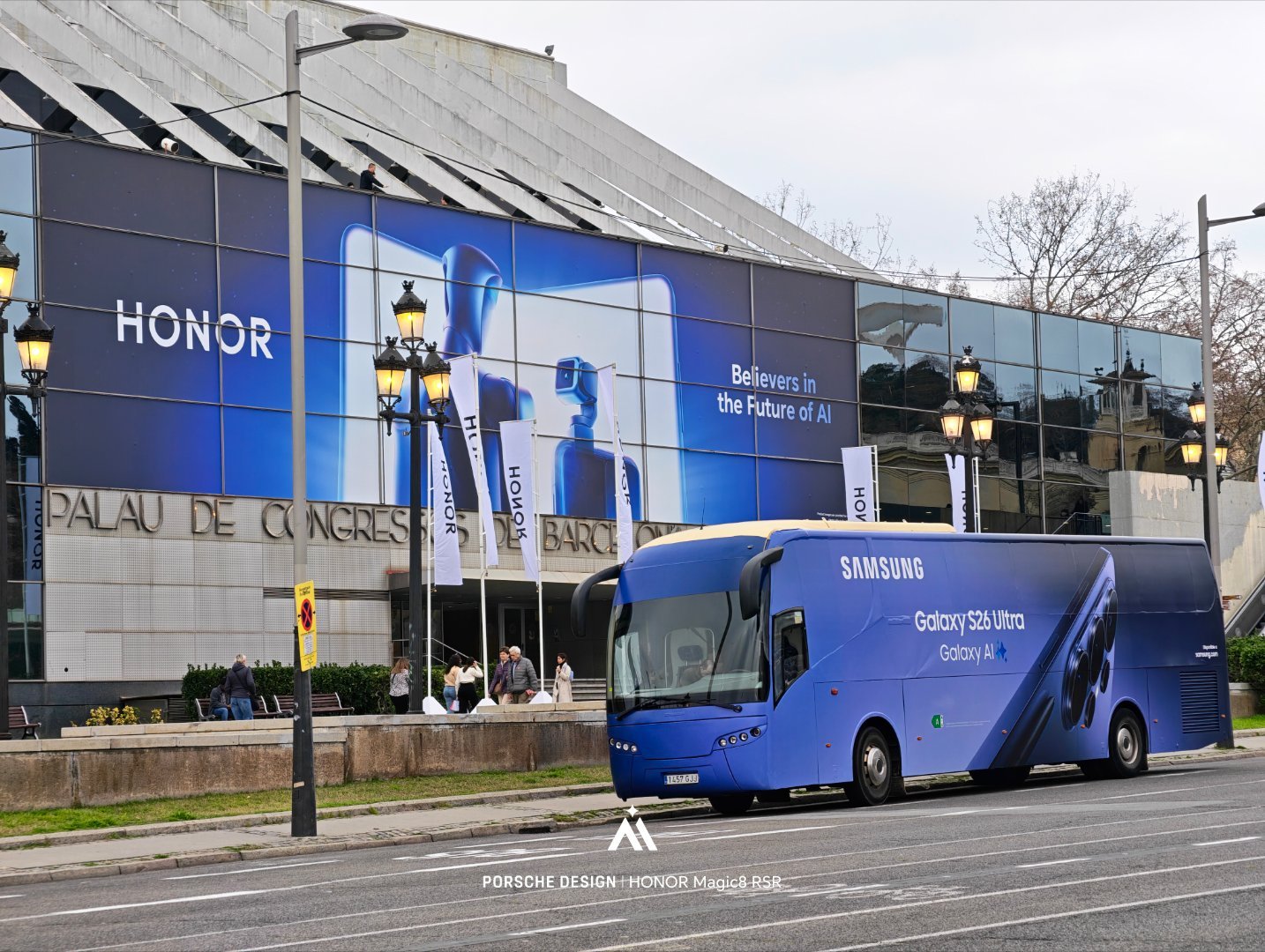 荣耀发布会场地附近,三星宣传车一直转来转去